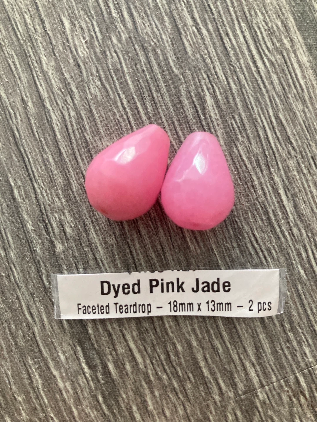 Two dyed pink jade beads. These are faceted teardrop shapes measuring 18mm x 13mm. Perfect for jewellery making!