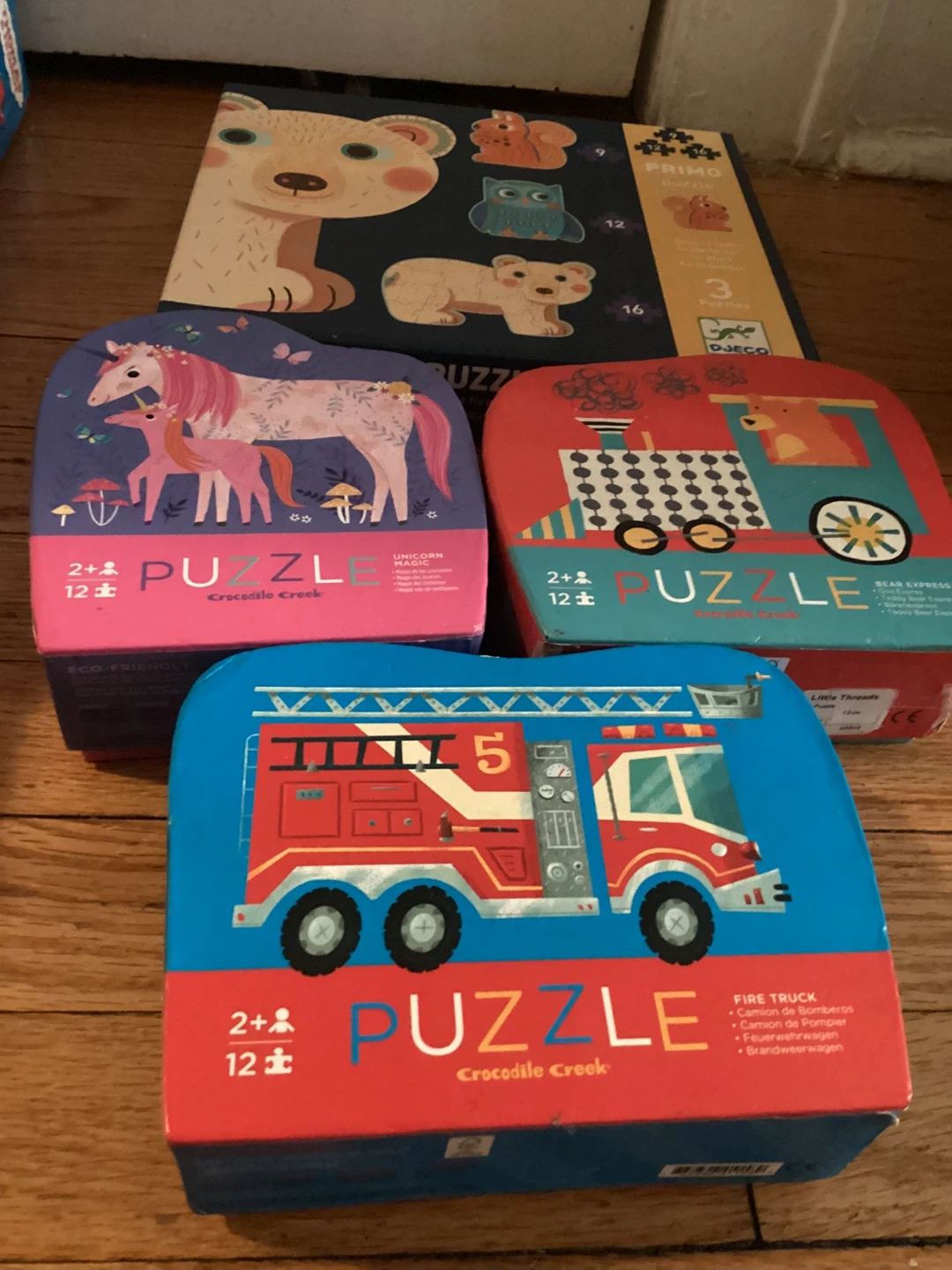 Crocodile Creek and Djeco Puzzles - Unicorn, Fire Truck, Bear