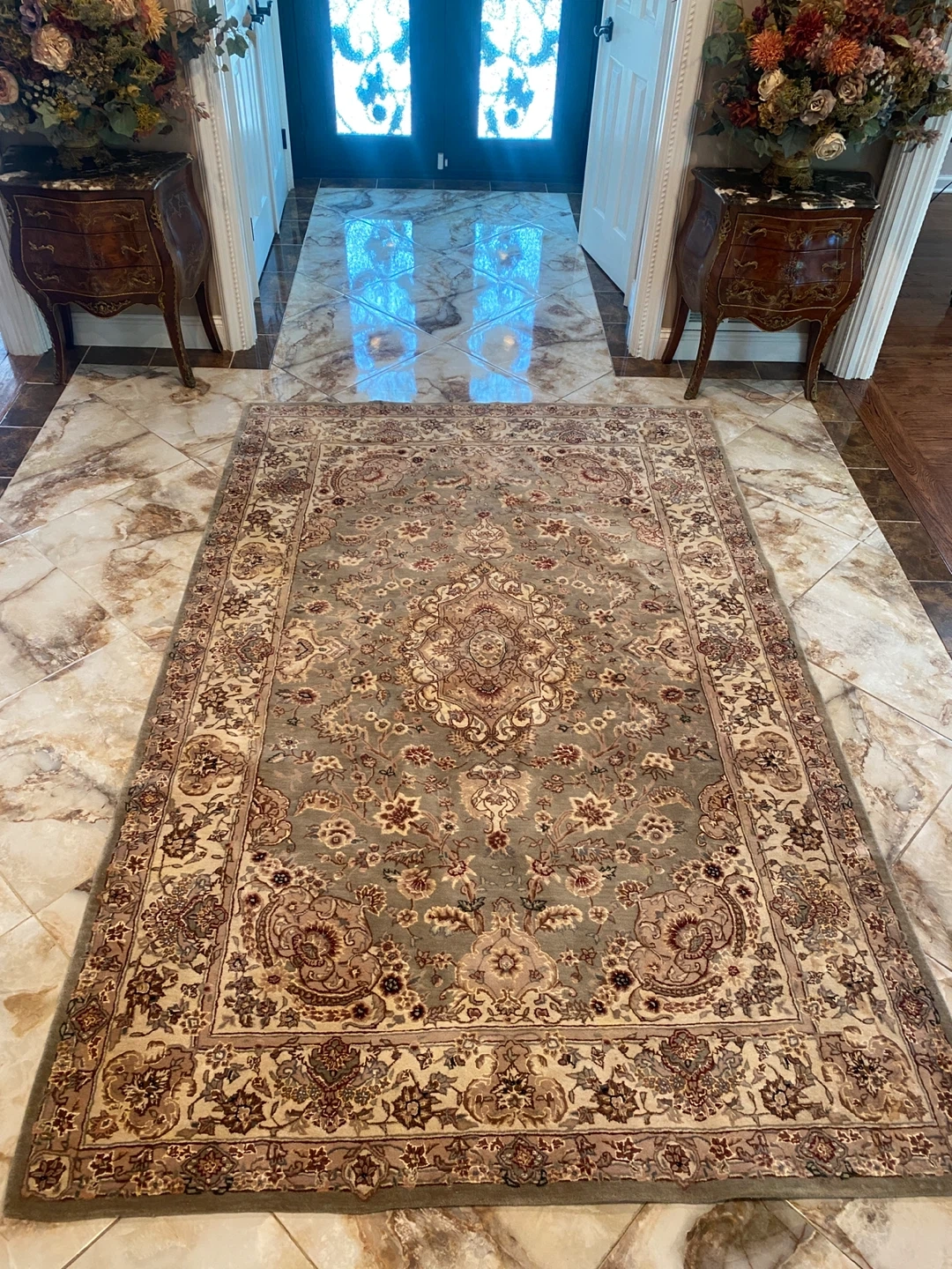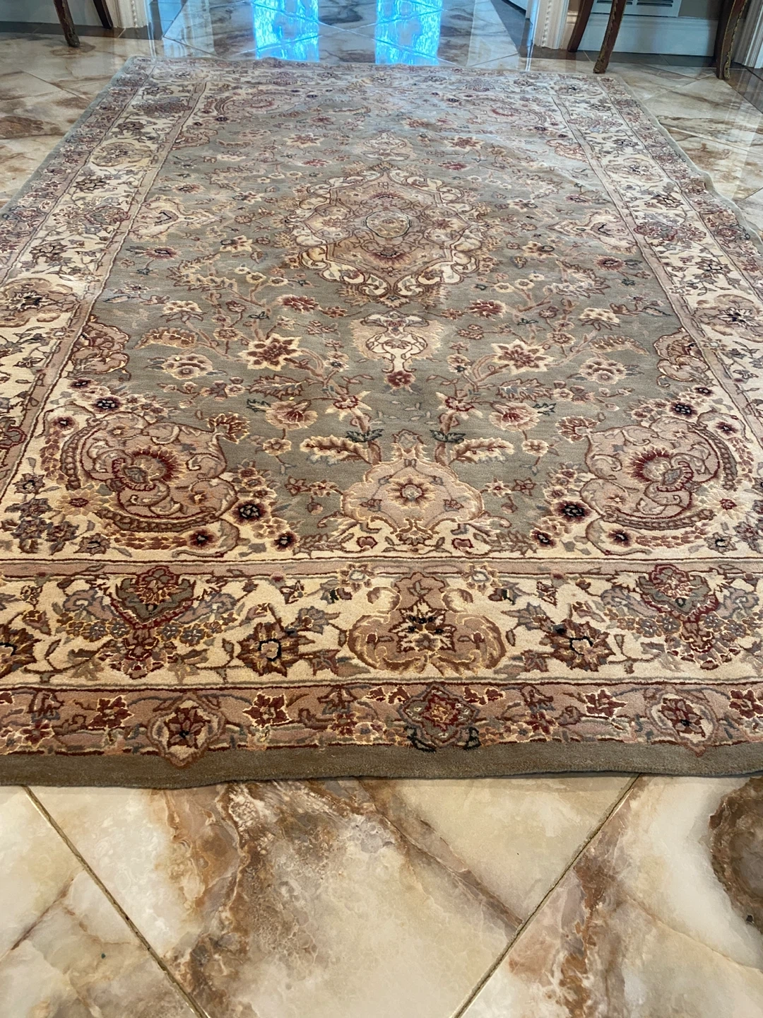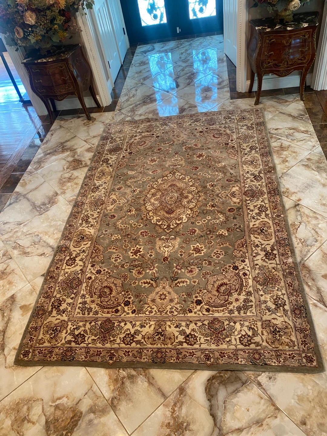 Beautiful Large Persian design wool area rug. Measures approximately 5.5'x 8.5'. In good condition from a clean and smoke free home. It's in good condition and would look great in any room!
