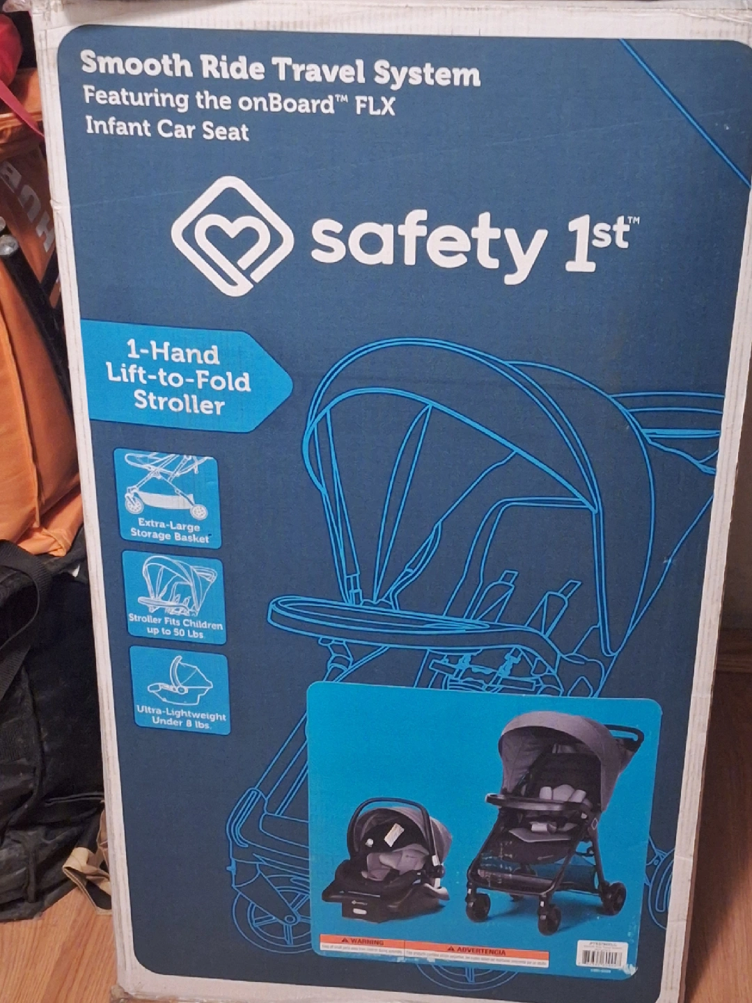 Selling a Safety 1st Smooth Ride Travel System featuring the onBoard™ FLX Infant Car Seat! It has a 1-Hand Lift-to-Fold Stroller and an extra-large storage basket. The stroller fits children up to 50 lbs and is ultra-lightweight, under 8 lbs