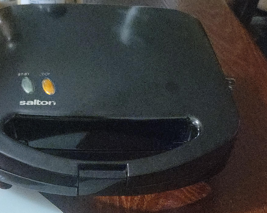 Selling a Salton sandwich maker in great condition! It's black and comes with a spatula and power cord. Perfect for making quick and easy sandwiches. Was given this never used.