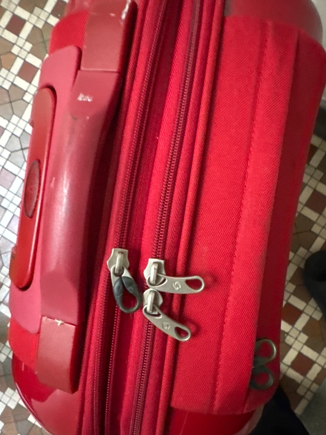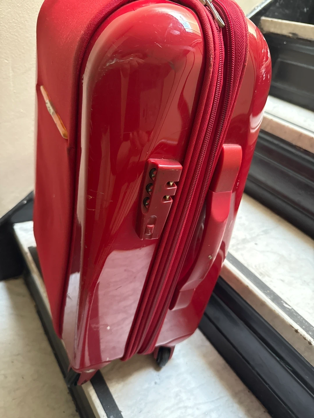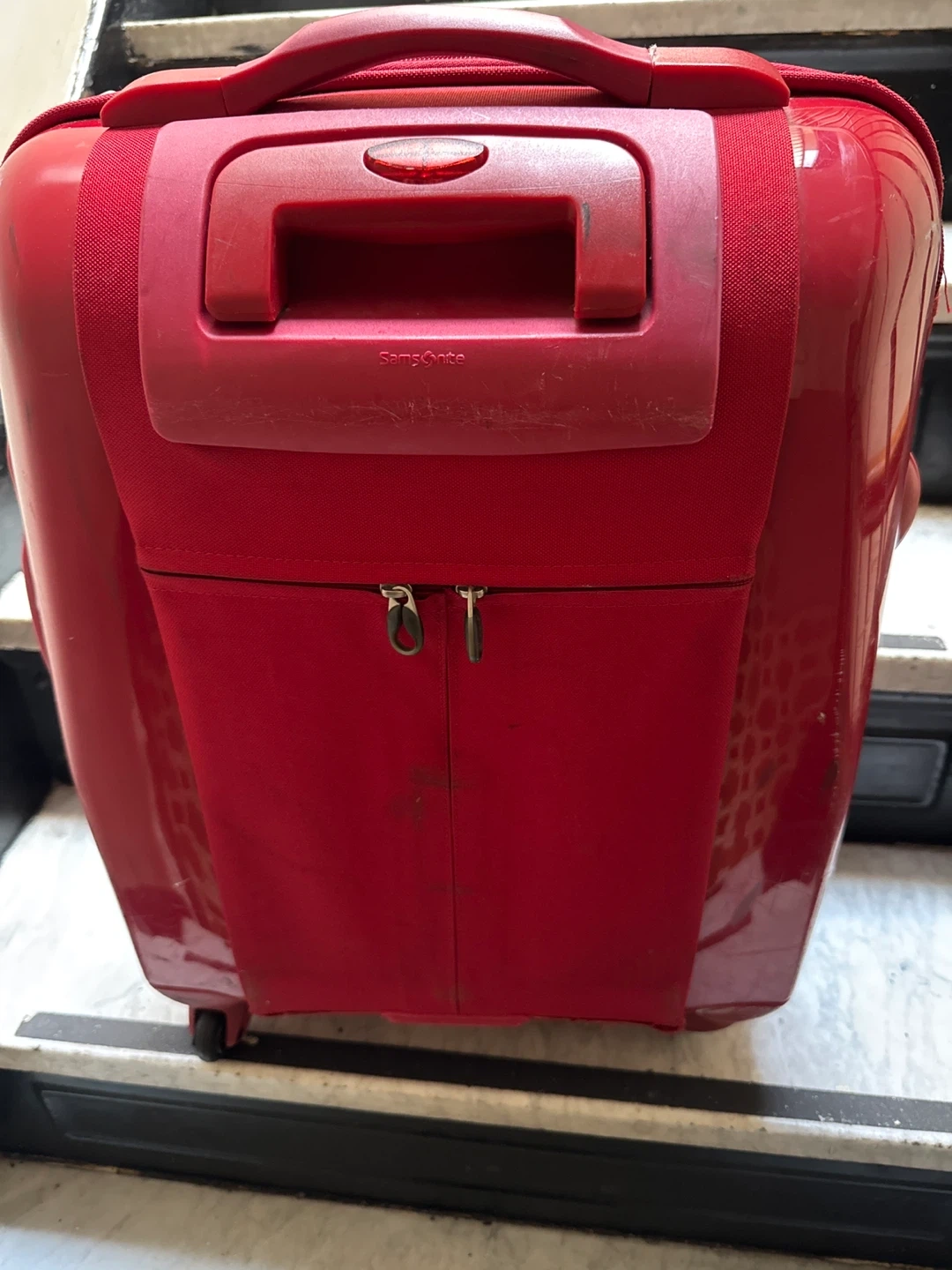 Selling a red Samsonite carry-on luggage. It has some signs of use, as shown in the pictures. But, lt’s clean and spacious inside the bag. I have lots luggages. So it is very cheap. Perfect for your next trip!