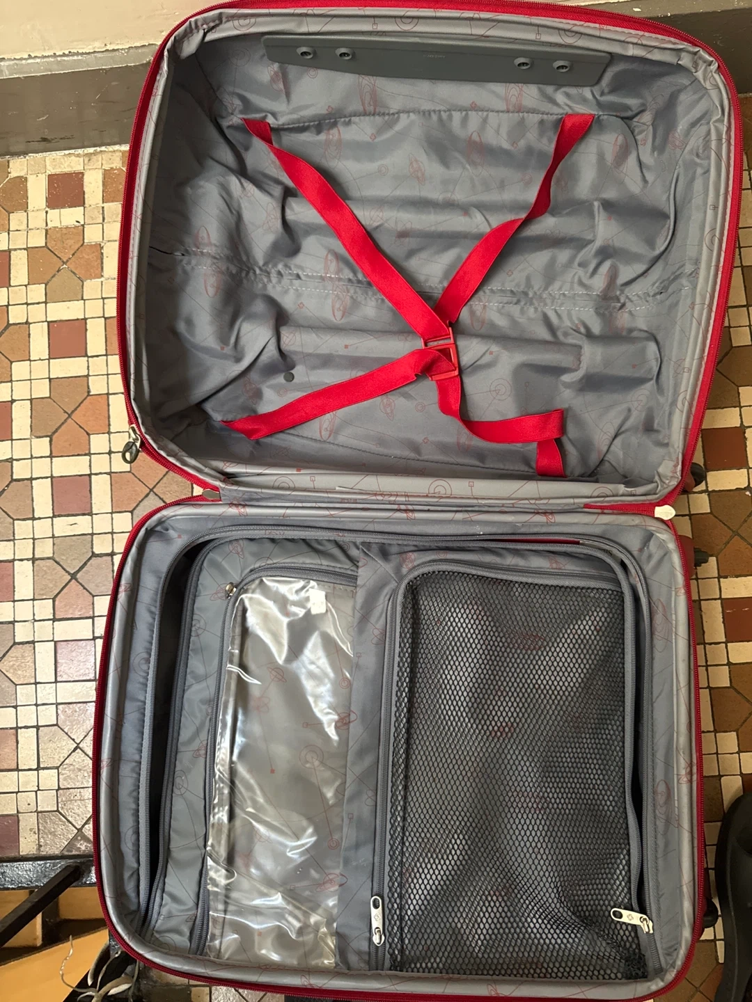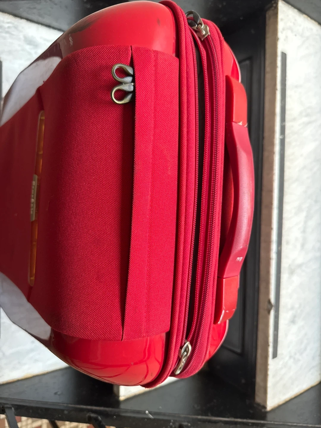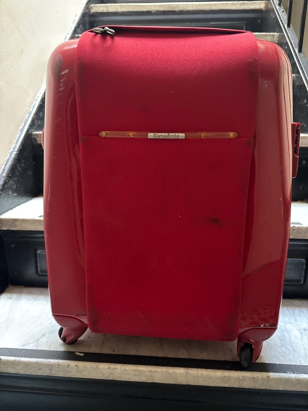 Selling a red Samsonite carry-on luggage. It has some signs of use, as shown in the pictures. But, lt’s clean and spacious inside the bag. I have lots luggages. So it is very cheap. Perfect for your next trip!