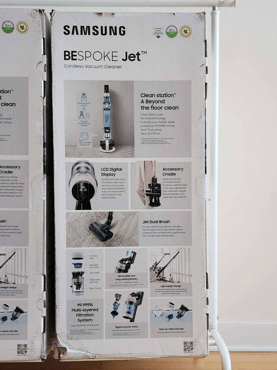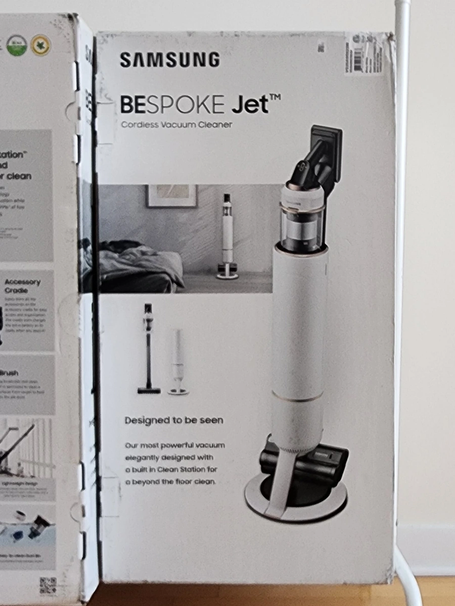 11samsung bespoke jet cordless stick vacuum w/ clean station white new in box, unopened & unused from pet free & smoke free home