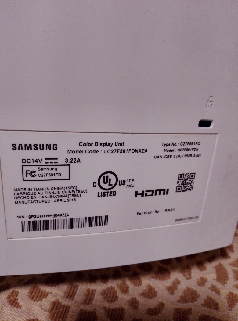 Selling a Samsung 27-inch curved monitor. Model code: LC27F591FDNXZA Type No.: C27F591FD Model: C27F591FDN It's in great condition and ready for a new home!