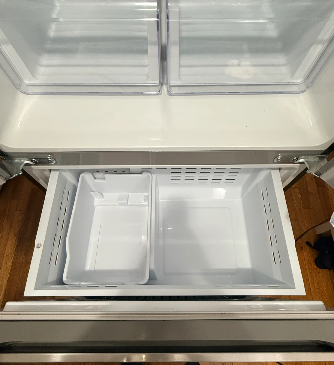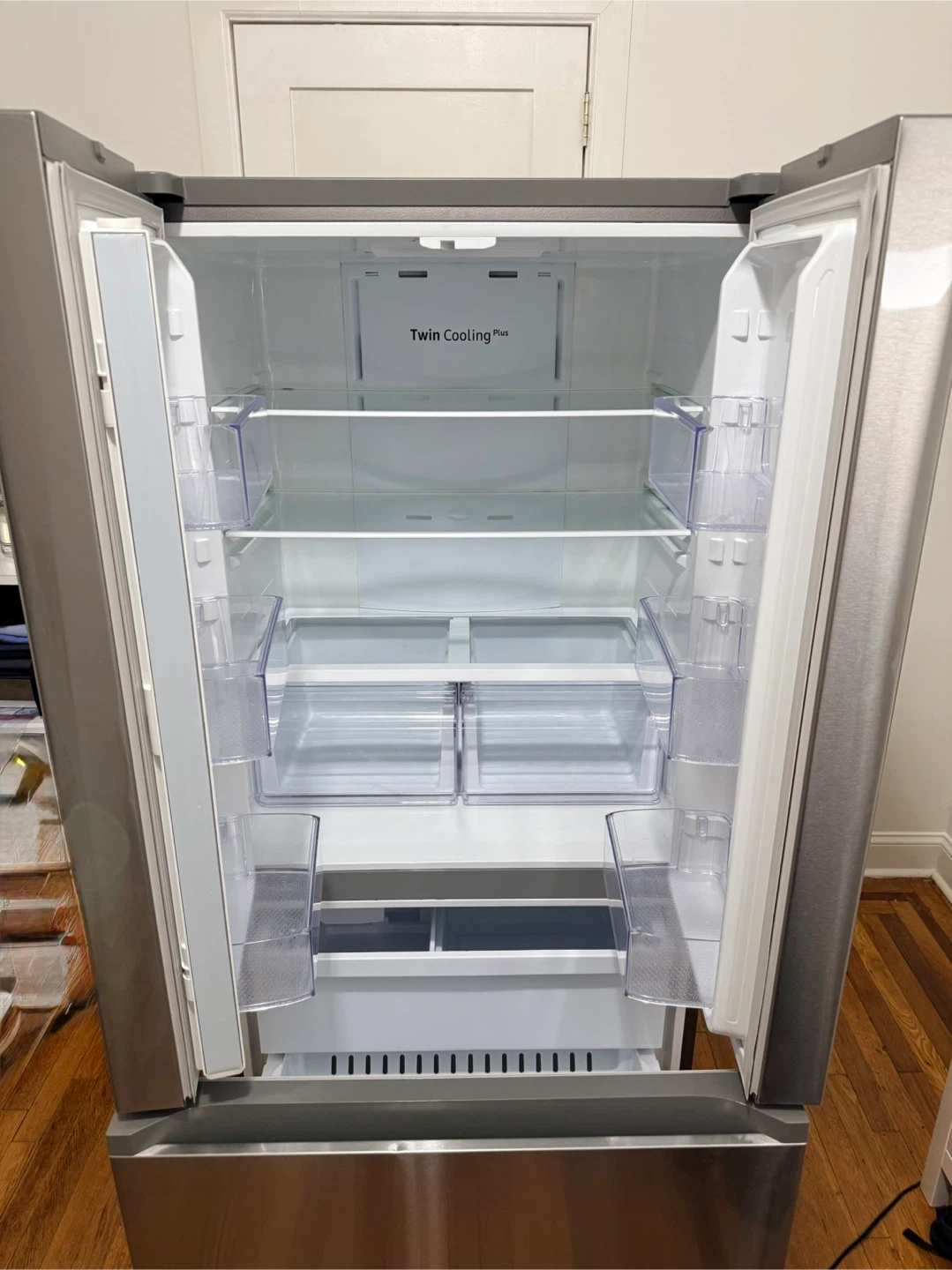 10Selling a Samsung French door refrigerator, model RF18A5101SR. It features Twin Cooling Plus to keep food fresh. Dimensions are approximately 32 1/8" W x 28 1/8" D x 70" H. It also has a SmartThings integration for easy control