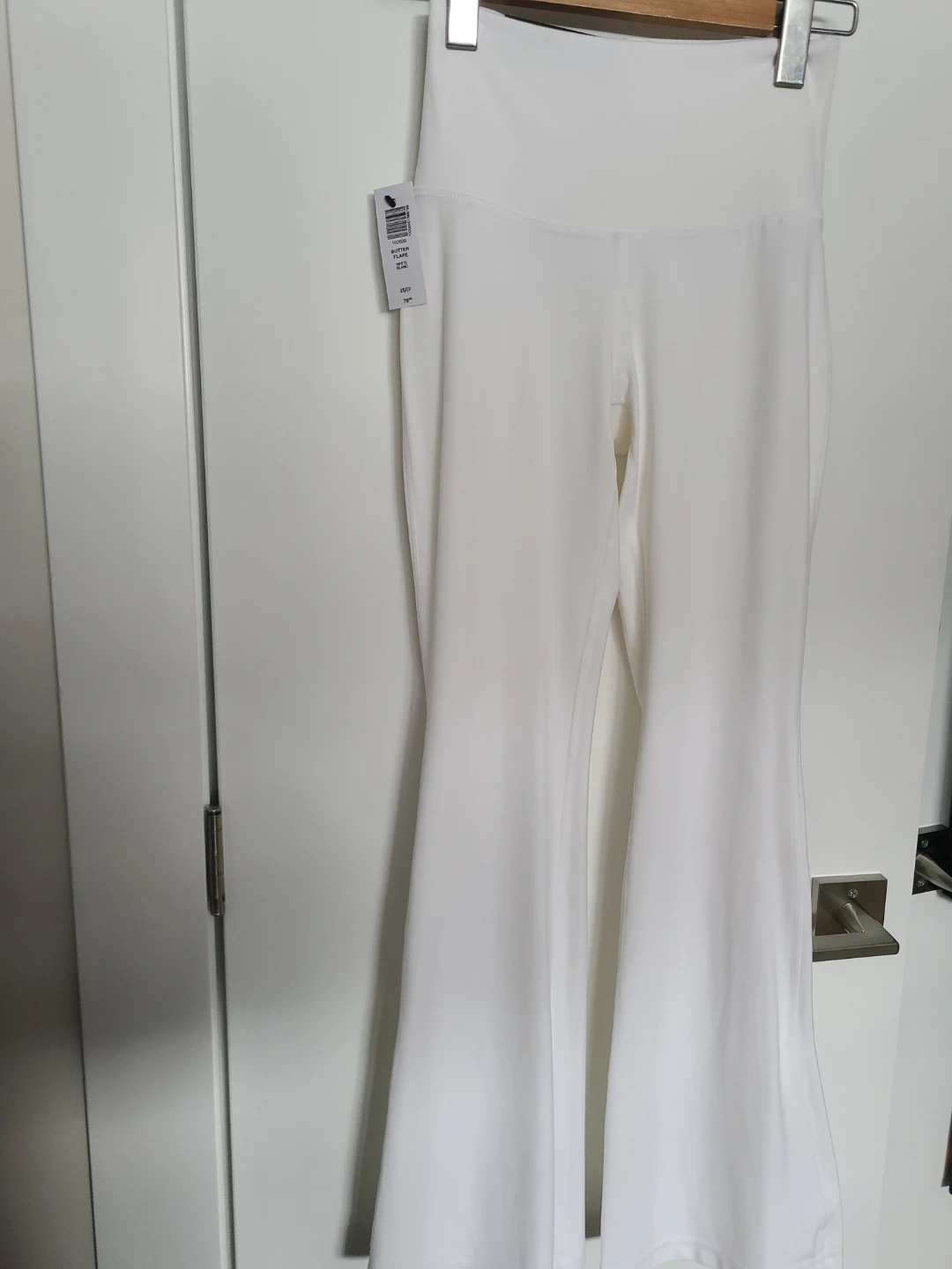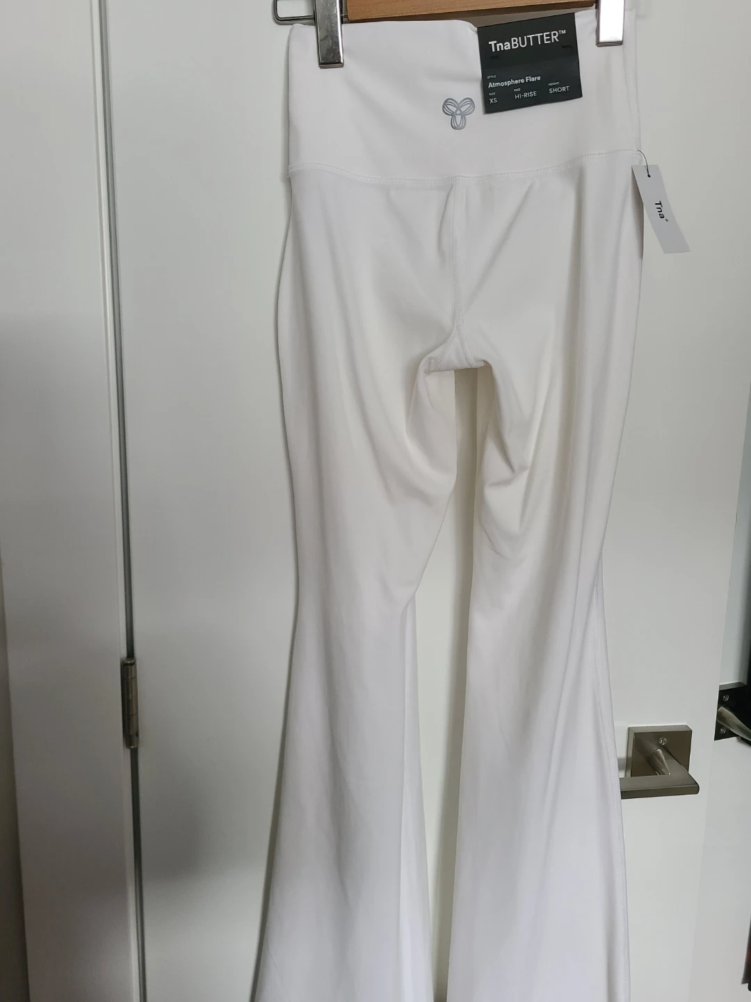 Tna Atmosphere Flare Hi-Rise flare pants in white. These pants are a size XS and a short height. They're made with TnaButter fabric for a soft feel.