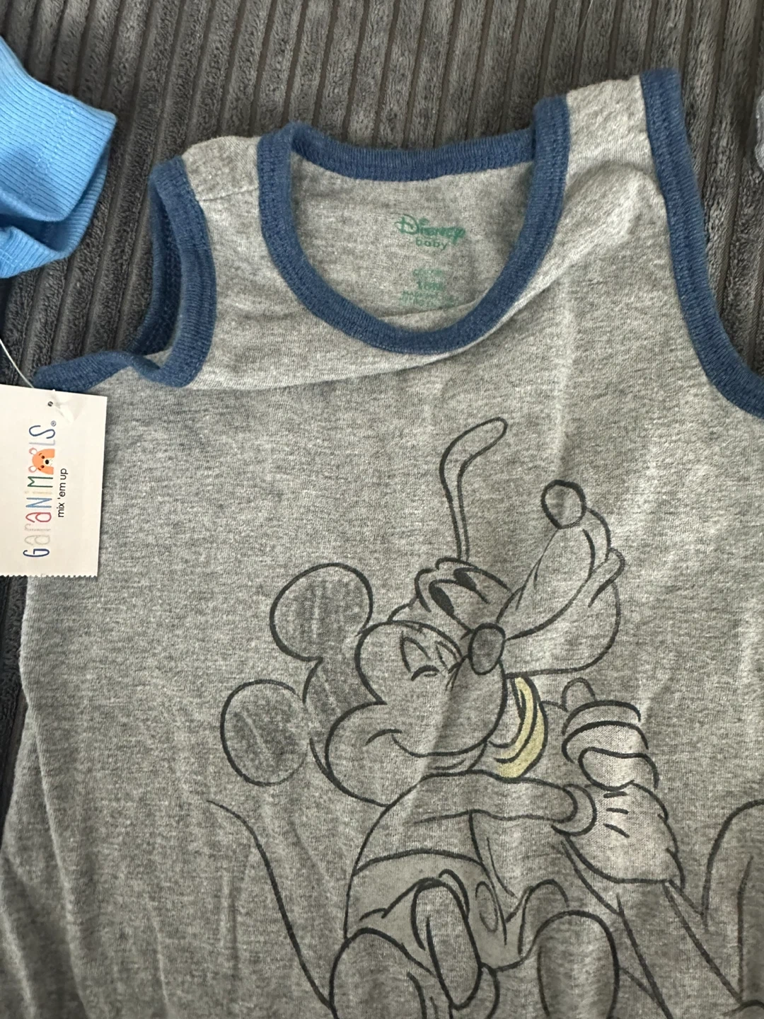 - A gray Disney tank top bodysuit