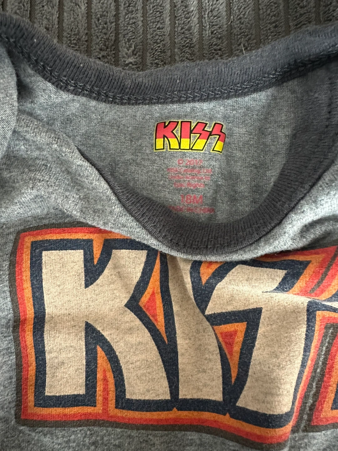 - A gray Kiss bodysuit
