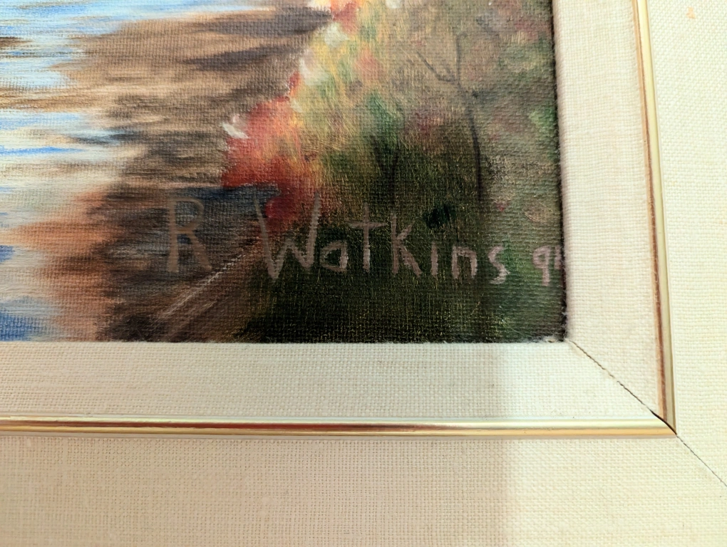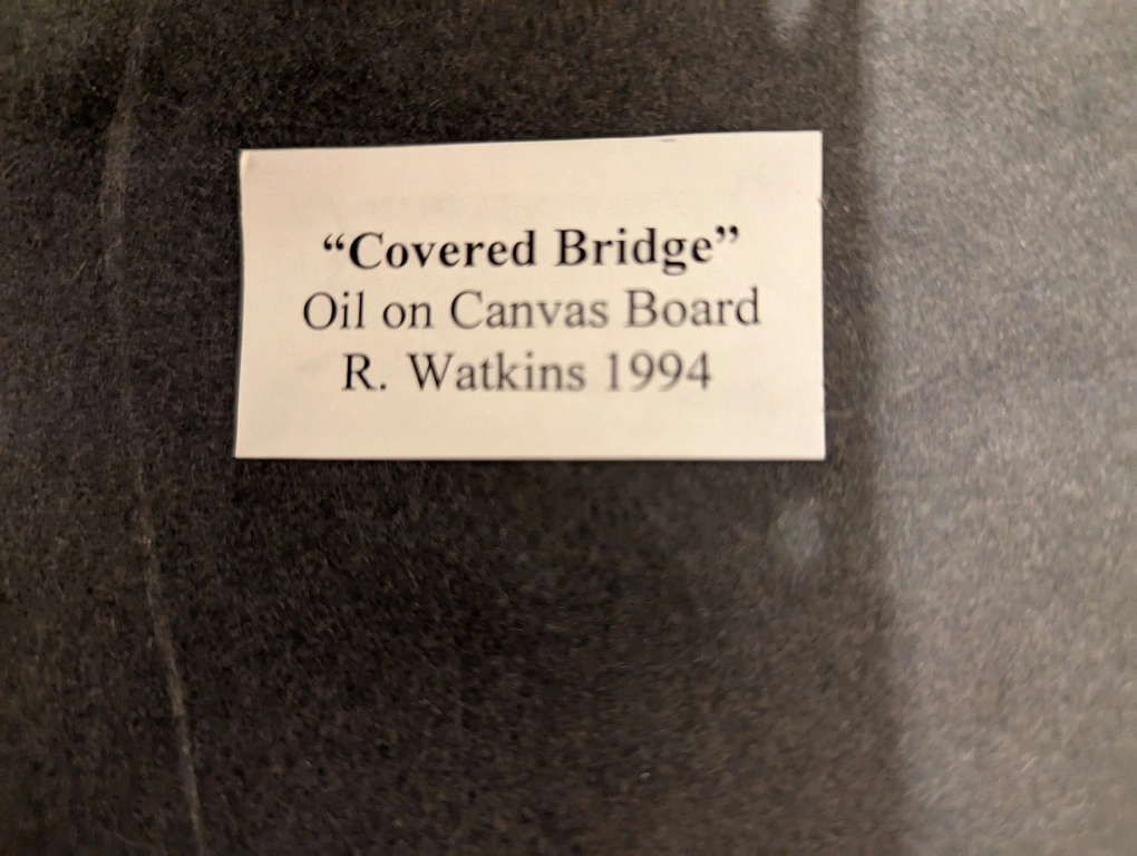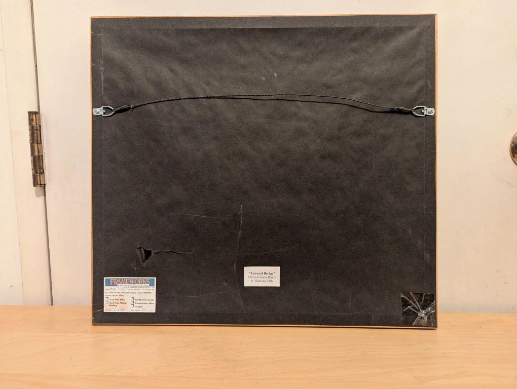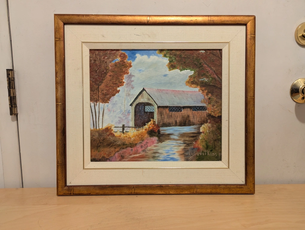 R. Watkins Framed Oil Painting - Covered Bridge