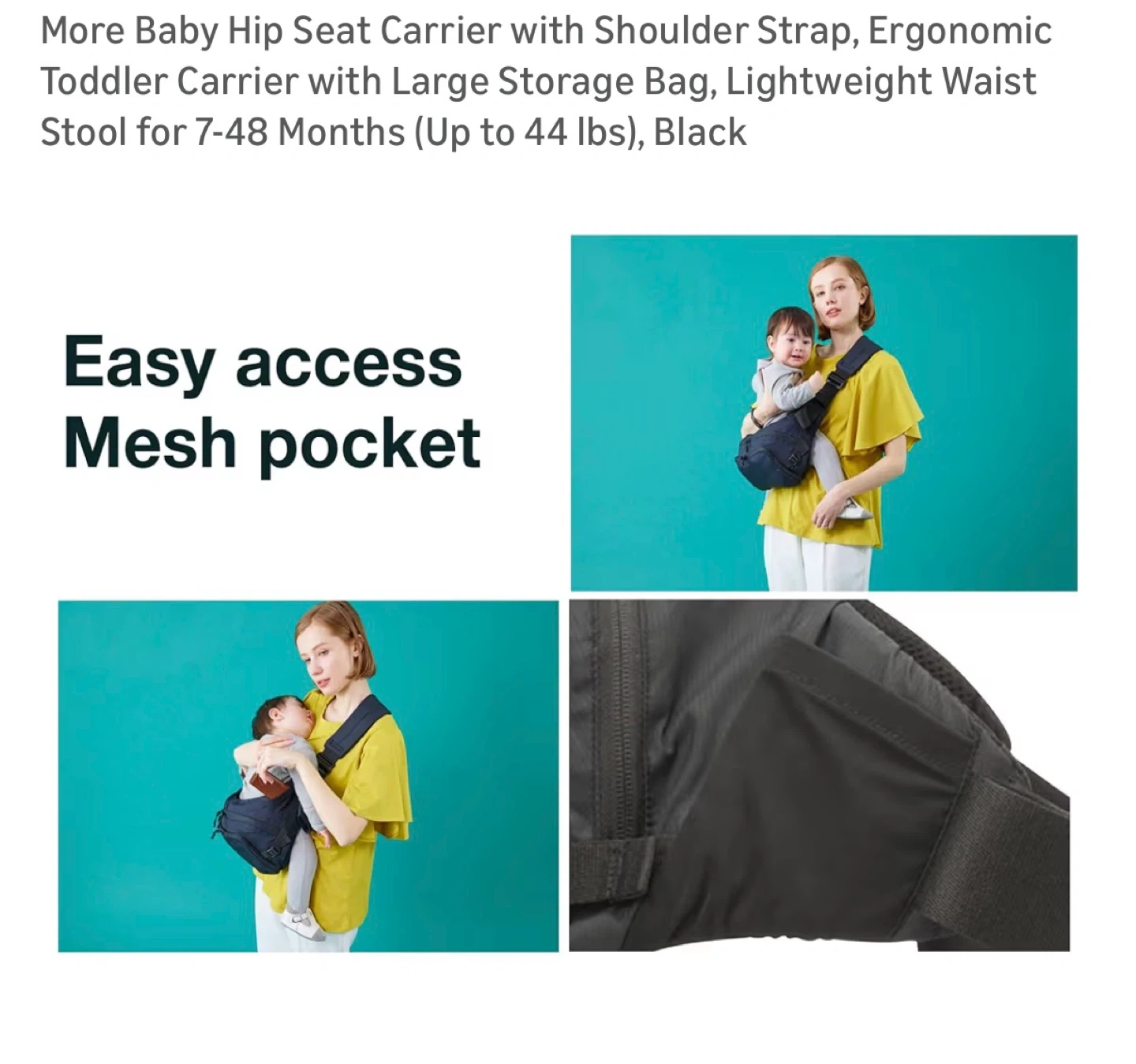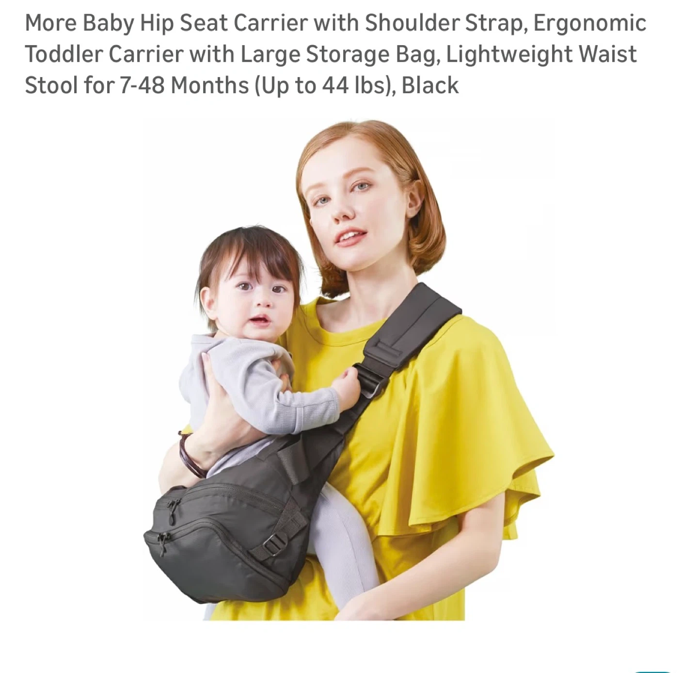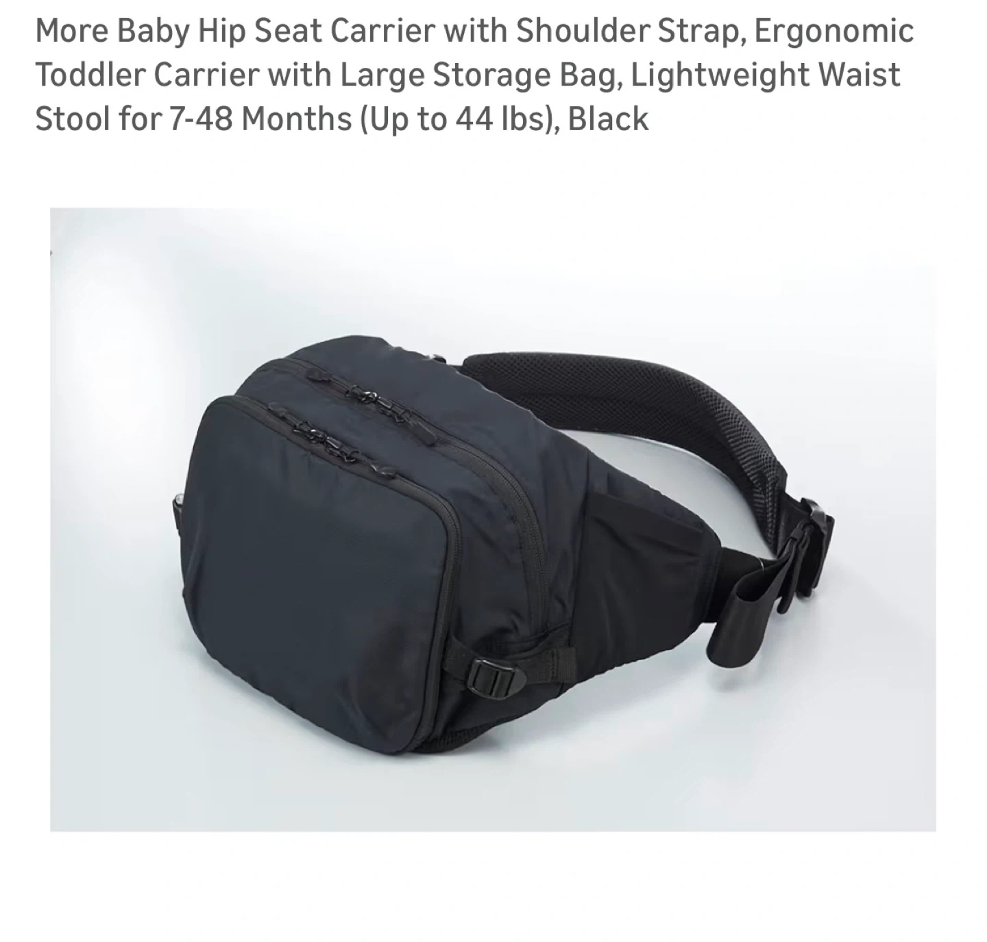 More Baby Hip Seat Carrier with Shoulder Strap, Ergonomic Toddler Carrier with Large Storage Bag, Lightweight Waist Stool for 7-48 Months (Up to 44 lbs), Black