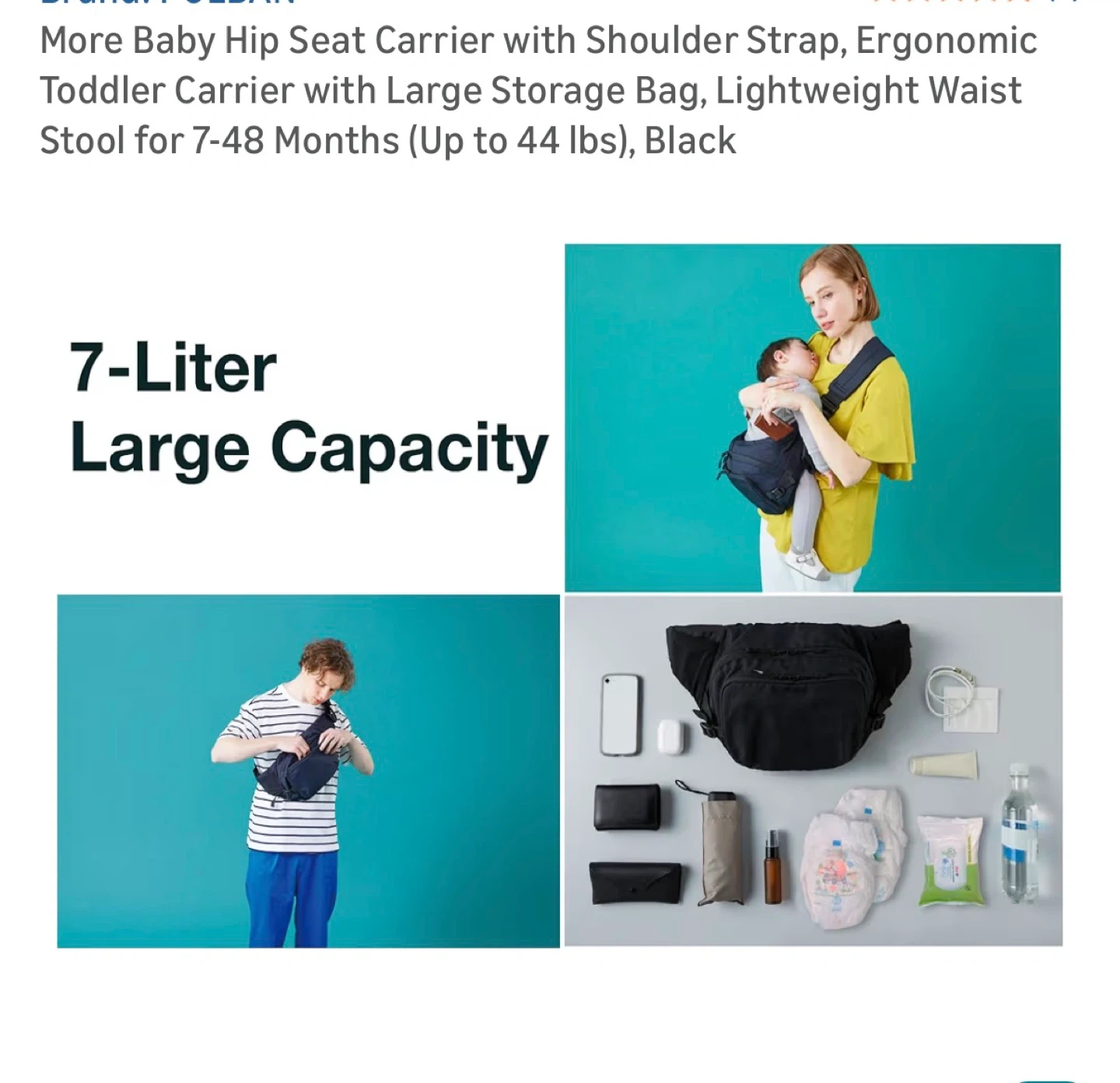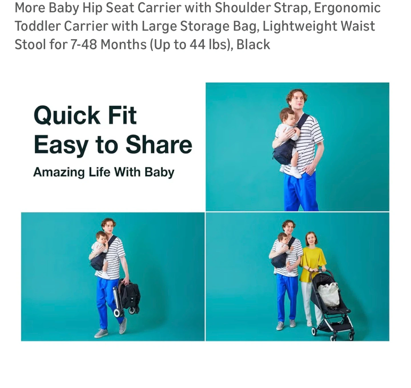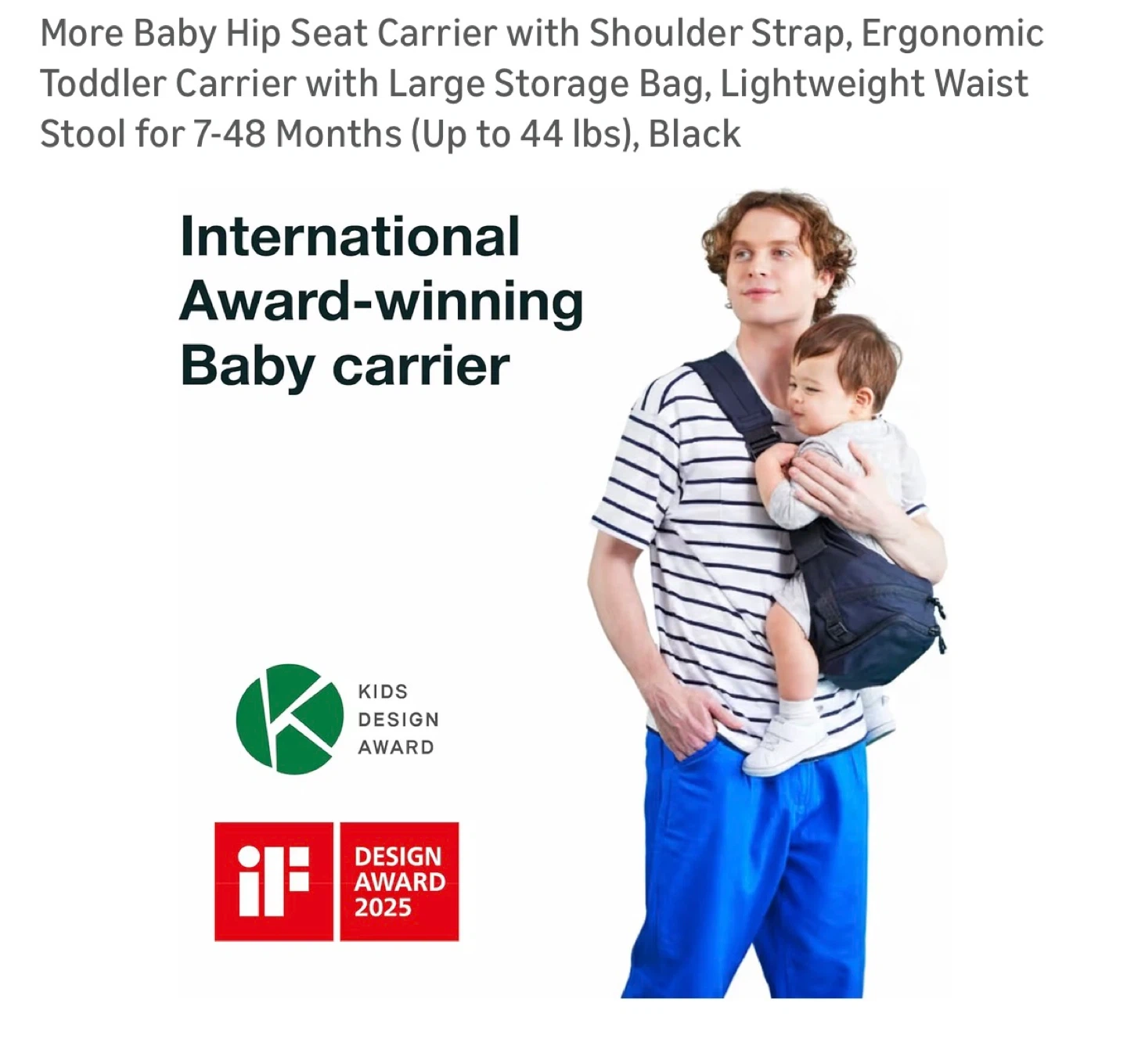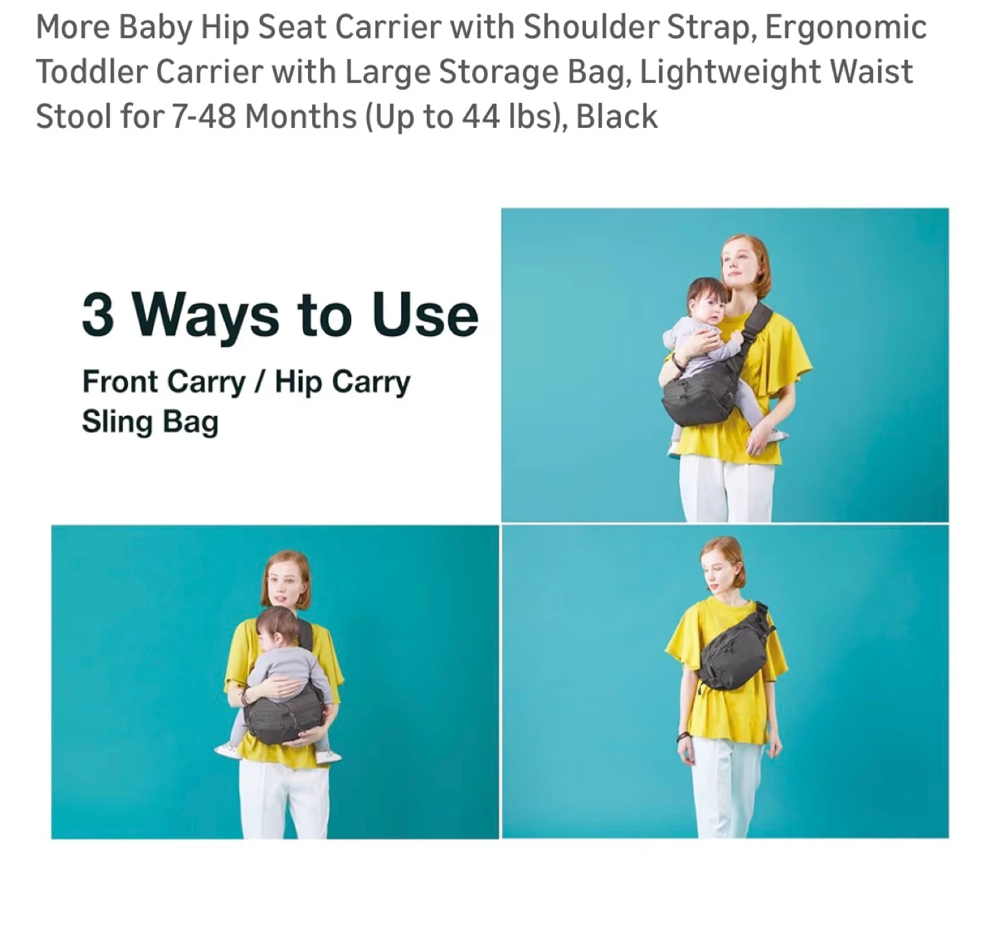 More Baby Hip Seat Carrier with Shoulder Strap, Ergonomic Toddler Carrier with Large Storage Bag, Lightweight Waist Stool for 7-48 Months (Up to 44 lbs), Black