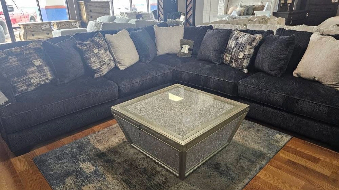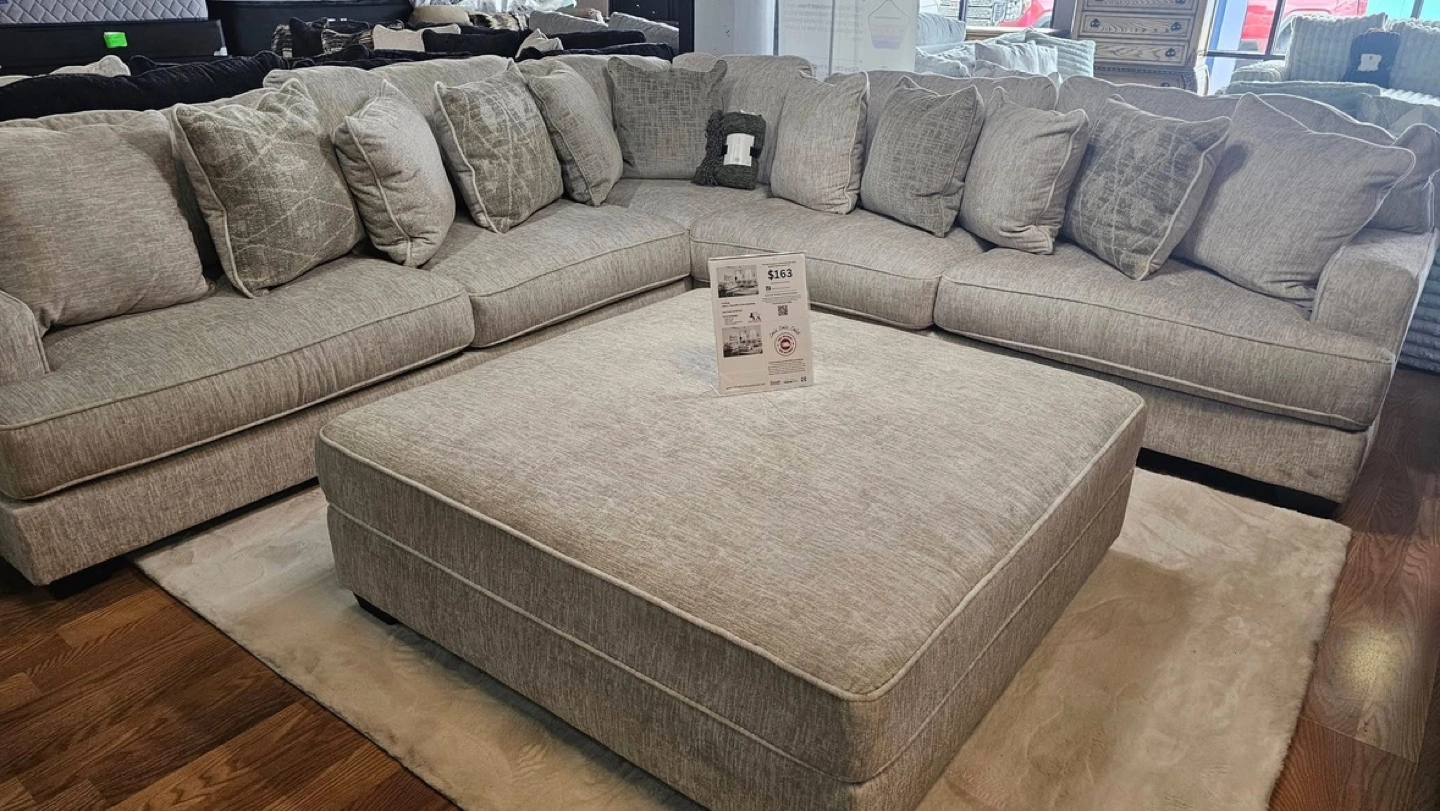 Large sectional sofa. Includes multiple pillows. Matching ottoman. Gray or black fabric options.we can deliver this to your home $54 down no credit needed financing