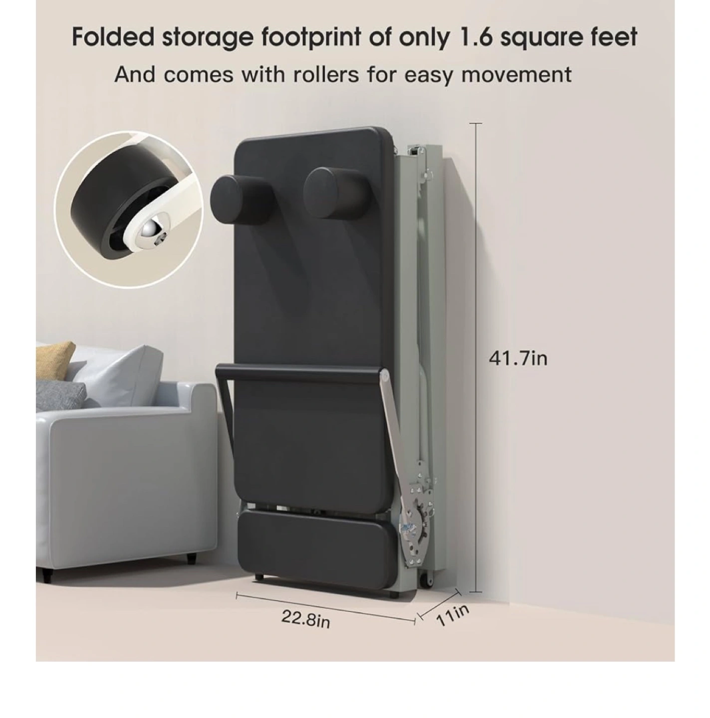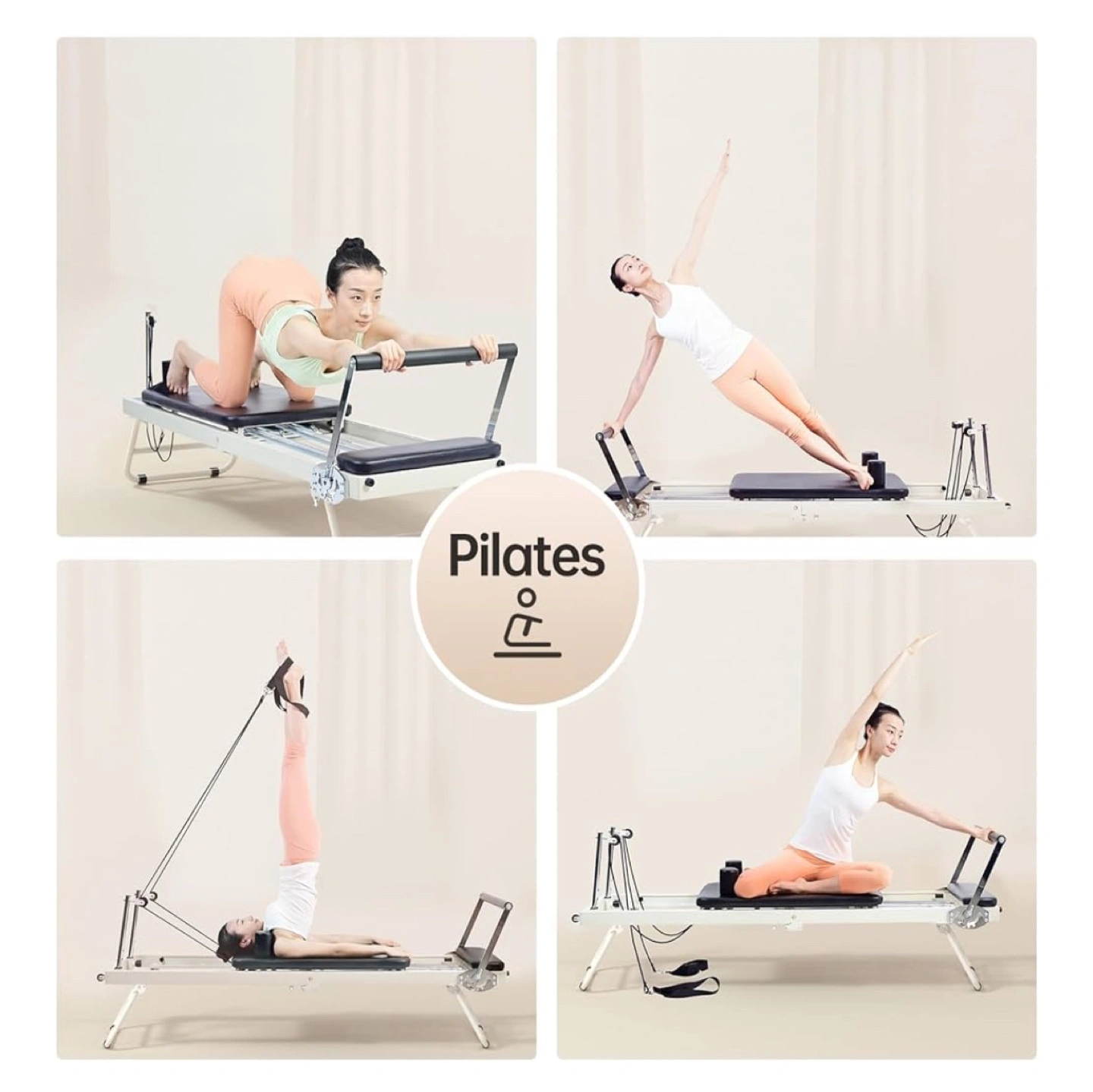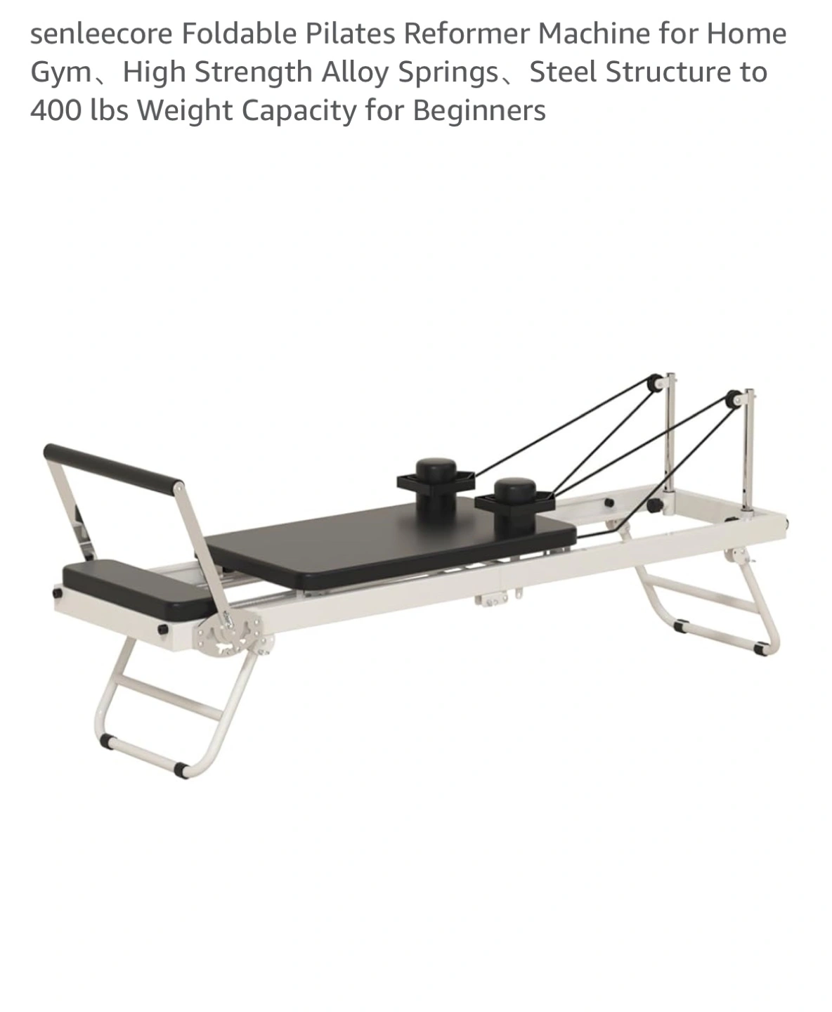 BRAND NEW NEVER BEEN USED Foldable Pilates reformer. High-quality UP leather upholstery. Steel frame. 400 lbs weight capacity. High-strength alloy springs. Easy to store. Includes rollers for easy movement. Purchased for $2,500