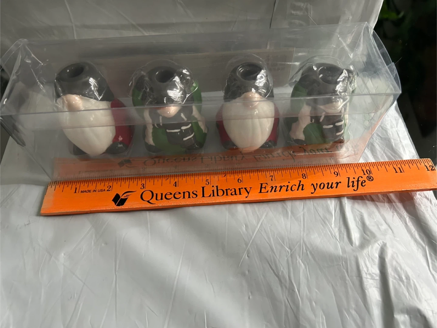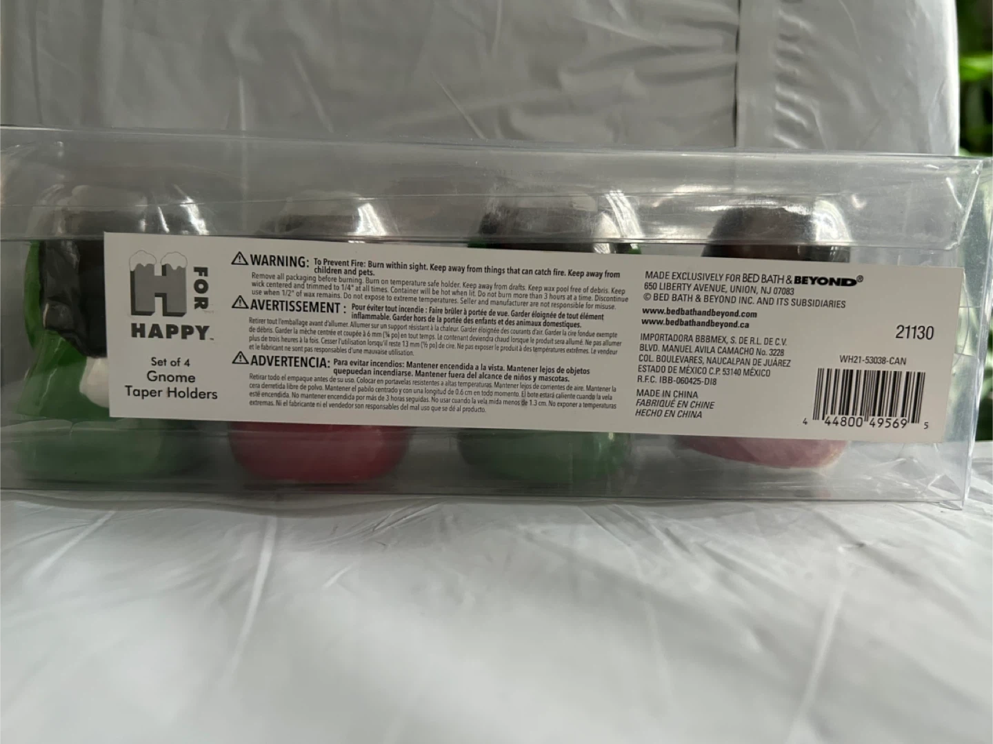15Set of 4 Gnome Taper Holders “H For Happy” Made exclusively For Bed, Bath & Beyond Brand New Each Gnome is approximately 2 1/2” Tall (please see photos) Tapers/Candles are not included Please be able to meet in Forest Hills, Queens, occasionally in Manhattan, and take a look at my other postings too!