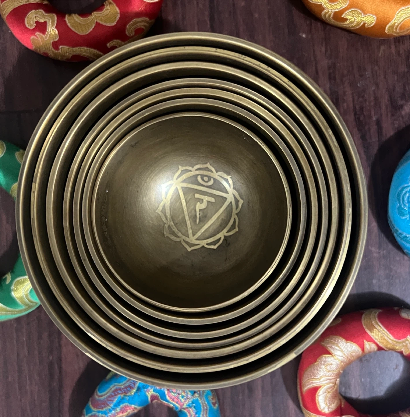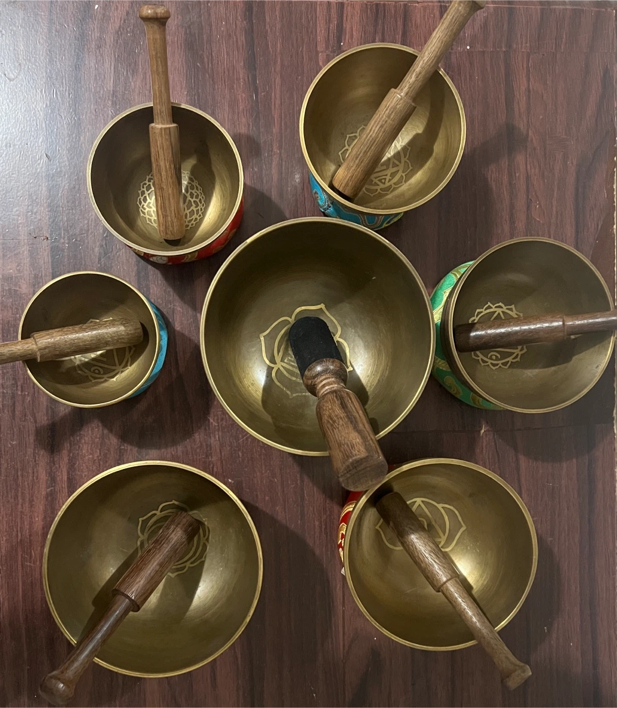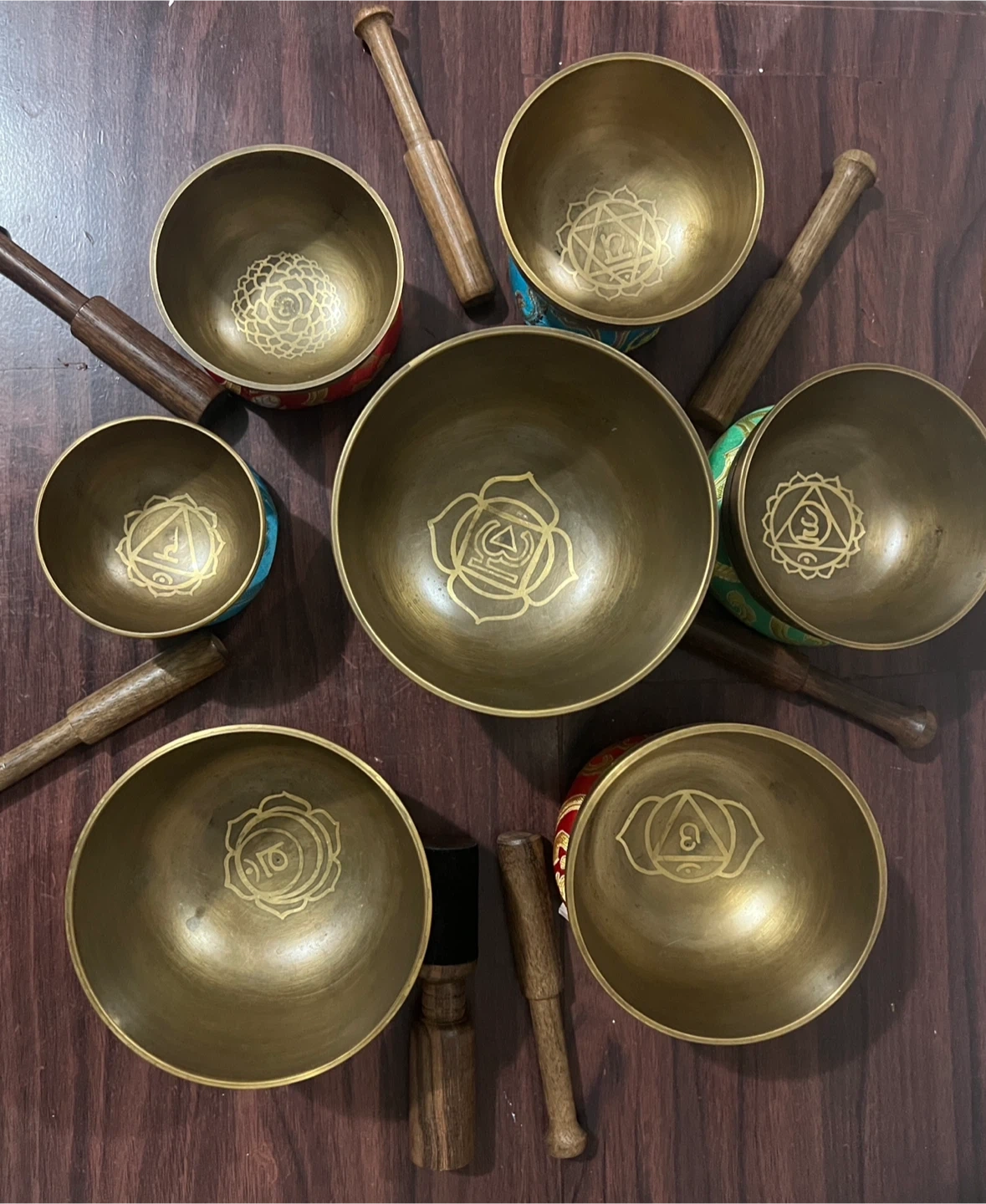 Seven Chakra Set Full Moon Singing Bowl From Nepal-Professional Meditation bowl-Tibetan Singing Bowls-Bodhi Bowl- Chakra Bowl-Sound Healing. Comes with mallot for each one.