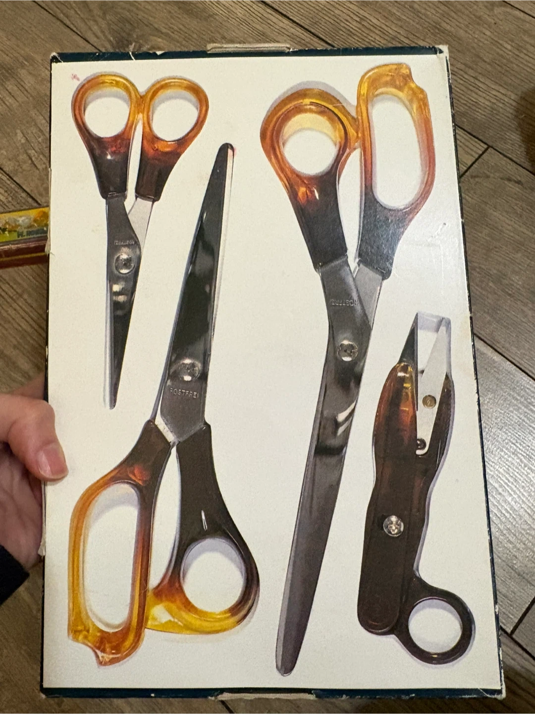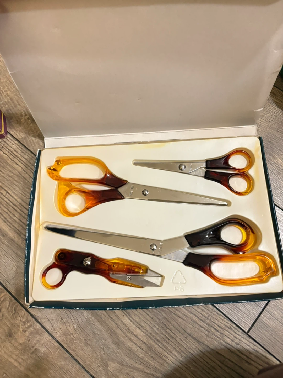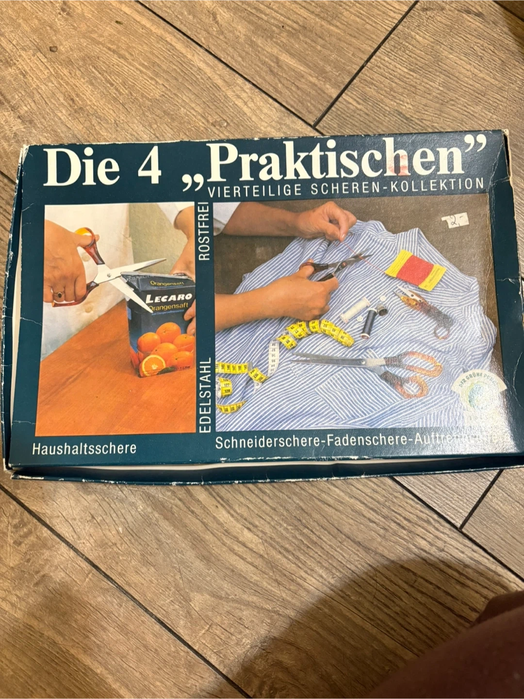 This set includes four pairs of stainless steel scissors. It has a variety of sizes for different cutting tasks. These scissors are made with Rostfrei stainless steel.made in Germany