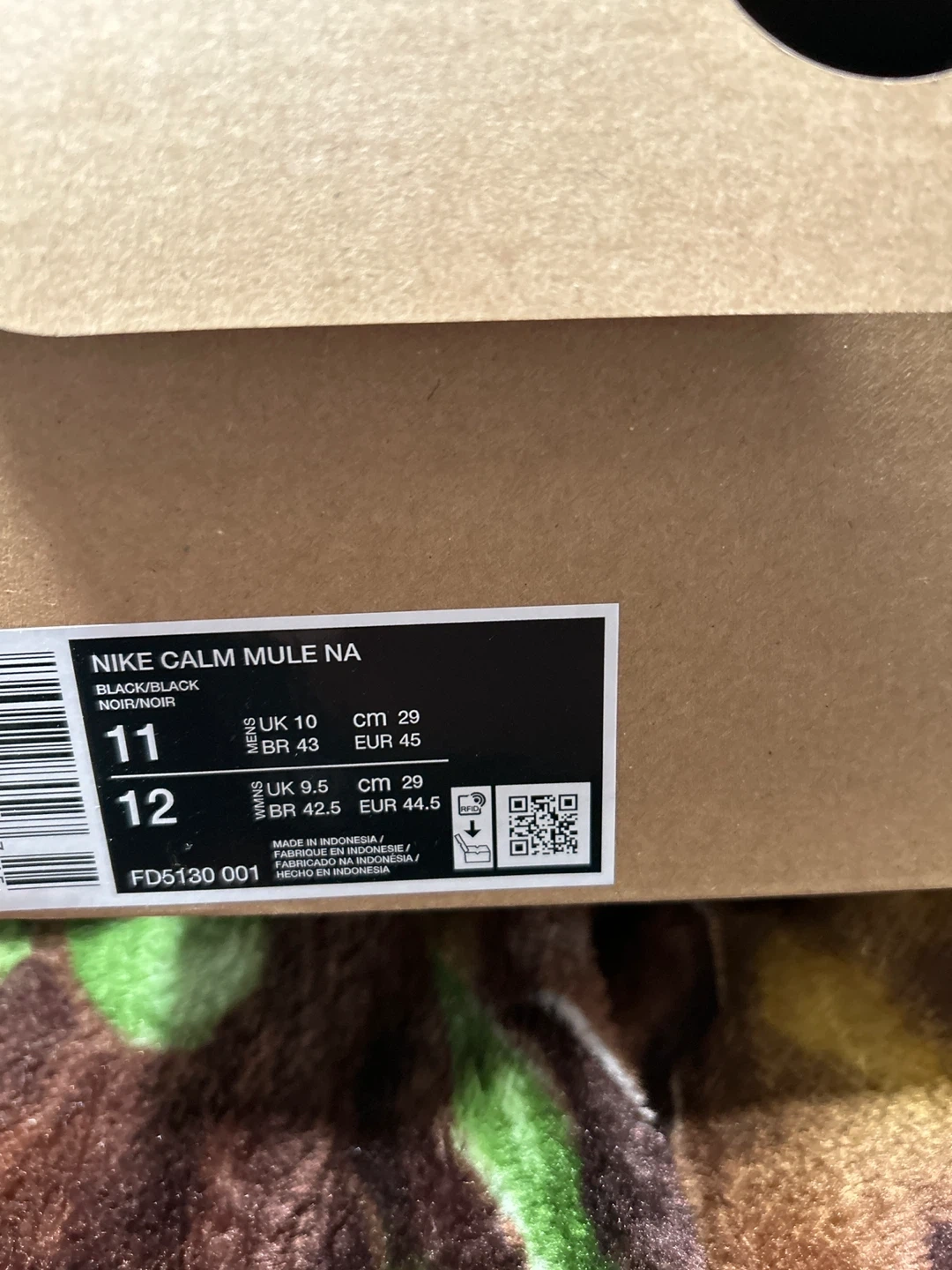 Nike Calm Mule shoes in black. Size 11 US Men's. Comes with original box. Comfortable and easy to wear!
