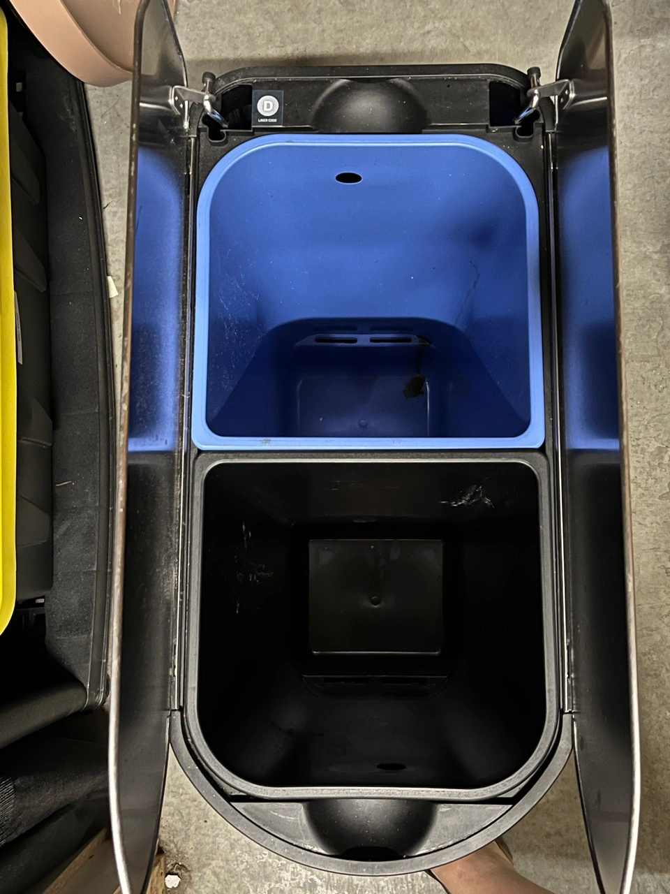 40L dual compartment stainless steel butterfly step can. Brushed nickel finish.
