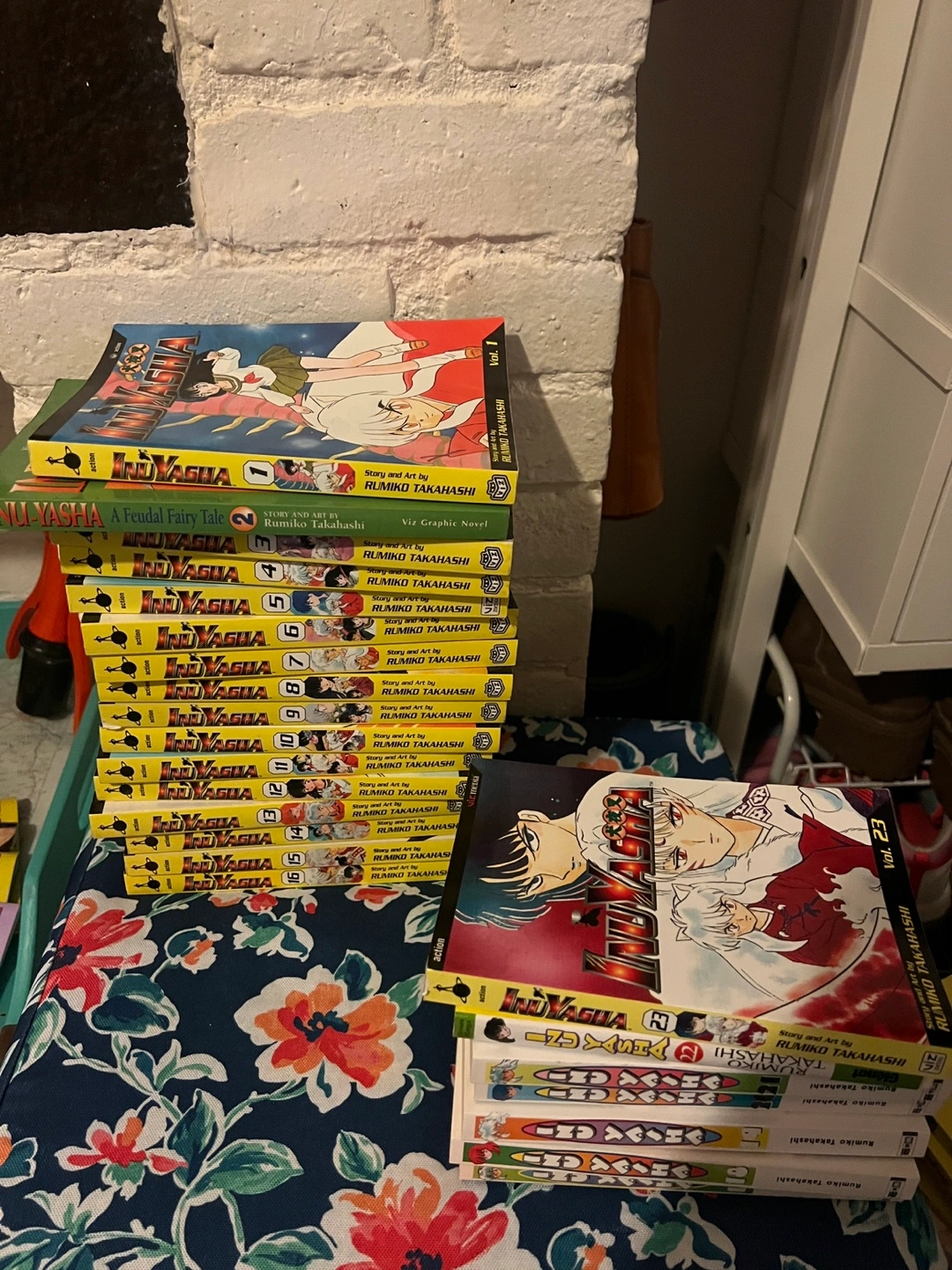 This is an InuYasha manga set with books in three languages. 1-16 are in English, 17-21 are in German, 22 is in Spanish, and 23 is also in English. I have found manga to be a great way to practice languages I’m studying throughout the years!