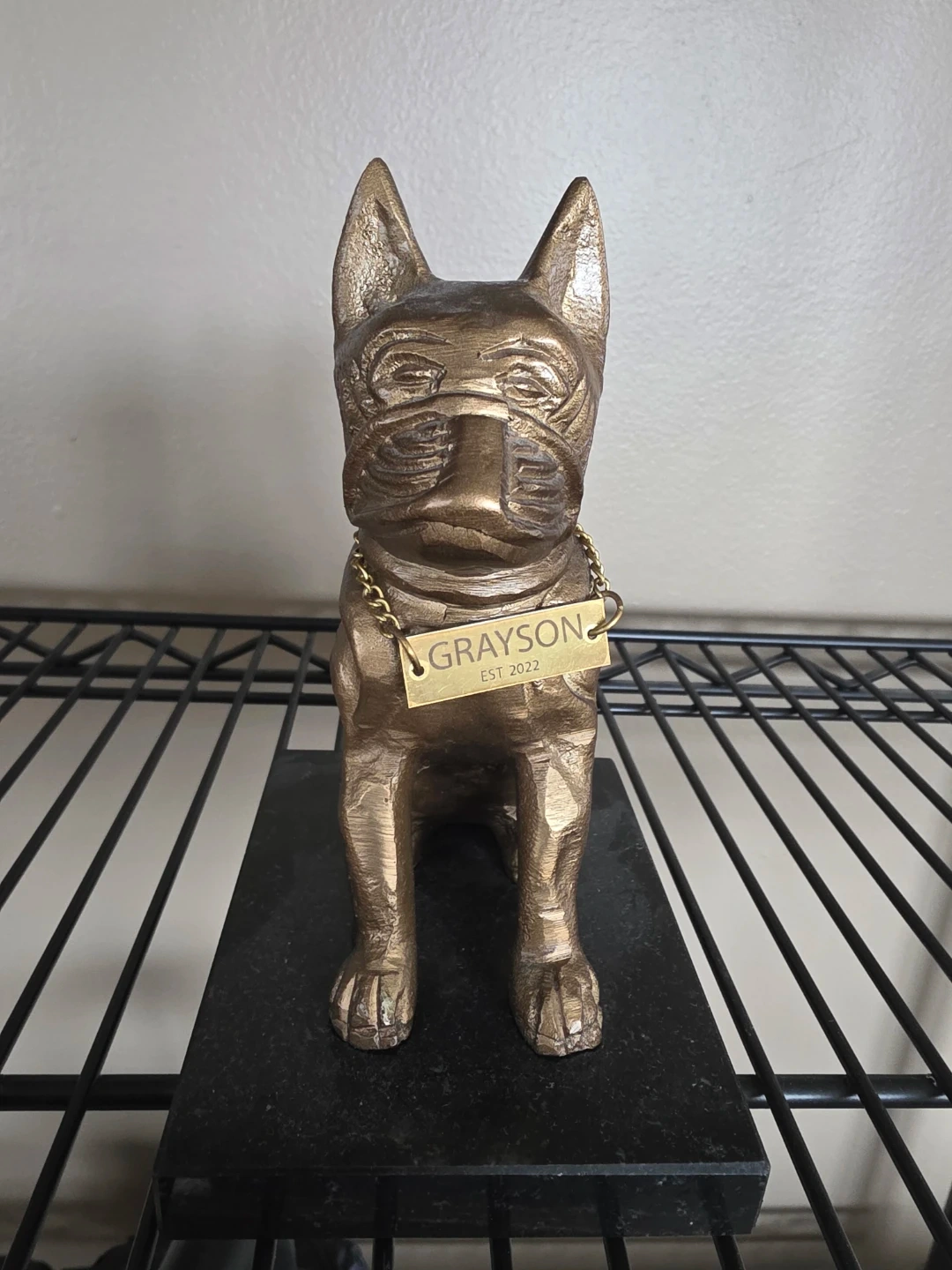 Bronze Dog Figurine with Name Tag 'Grayson EST 2022'