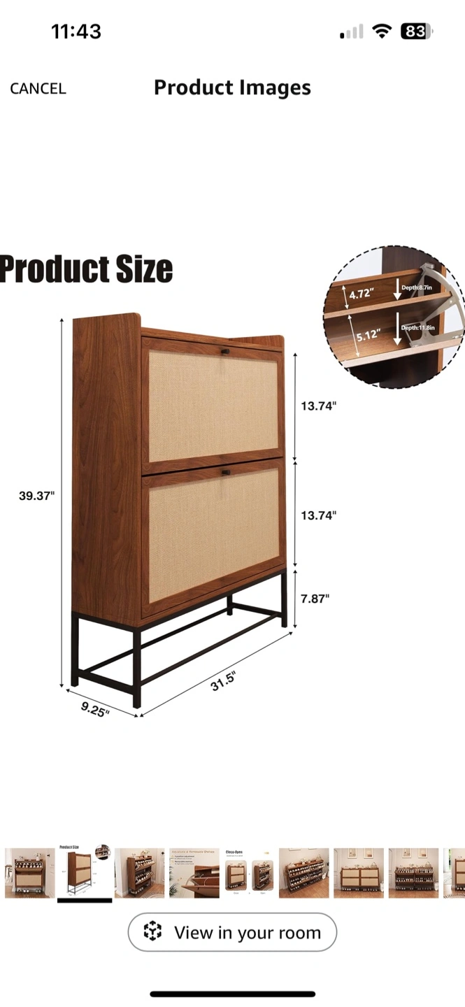 73Good condition AVZEAR Narrow Shoe Storage Cabinet for Entryway with 2 Flip Drawers, Freestanding Shoe Cabinet with Natural Linen Panel, Slim Wood Shoe Organizer Closed Shoe Rack for Hallway, Foyer(Walnut)