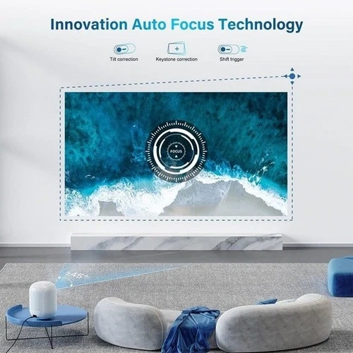 Auto Focus Keystone Portable Mini Projector with 5G wifi 6 and bluetooth, 4K Native 1080P. Smart Home Projector Compatible with iOS/Android, HDMI, USB. Great for outdoor movies.