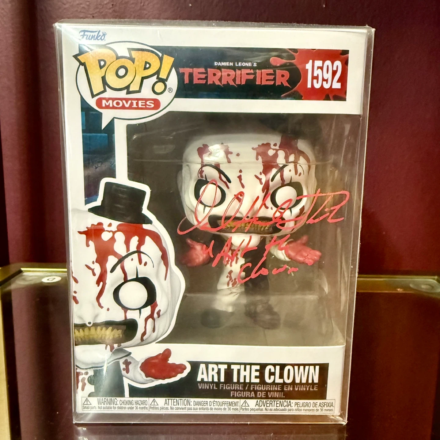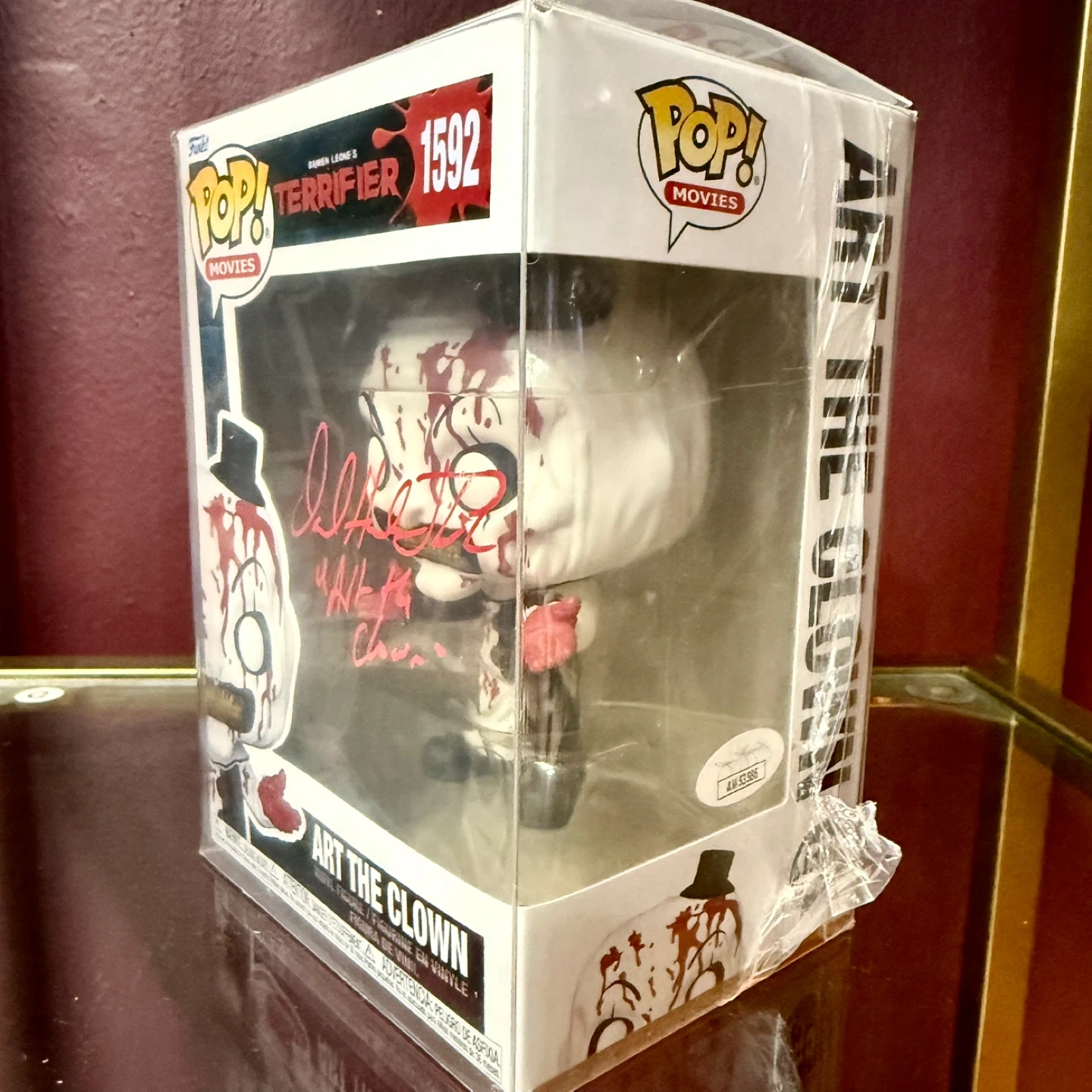 A rare collectible for horror fans: Funko Pop! Movies #1592 – Art the Clown (Bloody Variant) from Terrifier, hand-signed by David Howard Thornton, the actor who plays Art the Clown. ✨ Features: • Official Funko Pop! Movies release (#1592, Bloody Variant) • Signed on the box window in red ink ✍️ • Autograph reads: David Howard Thornton – Art the Clown • Box in protective case for preservation • Perfect centerpiece for any horror or autograph collection 📍 Pickup in Chicago or shipping available at buyer’s expense. 💲 Price: $300 (open to reasonable offers)