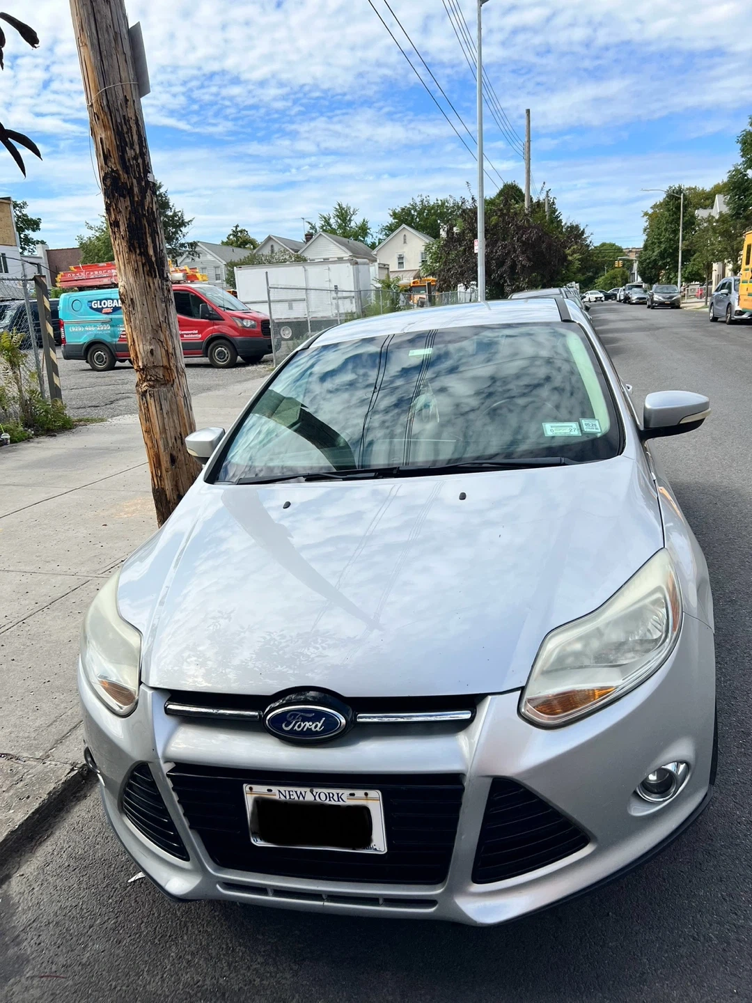 Selling a silver Ford Focus sedan. It has black leather interior. Good condition.