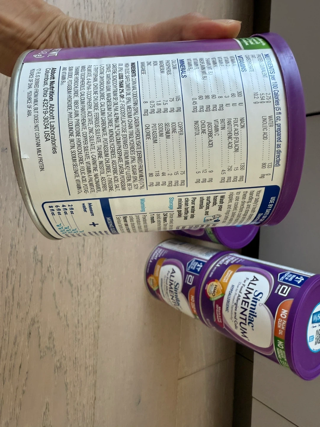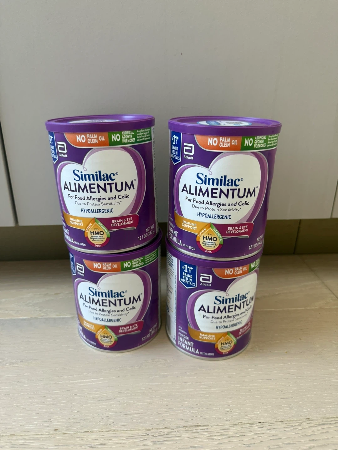 Selling four cans of Similac Alimentum infant formula. This formula is hypoallergenic and designed for babies with allergies and colic. Expiration Date: 2026 May 02 Get 1 for $25 or 4 for $80— only $20 each!