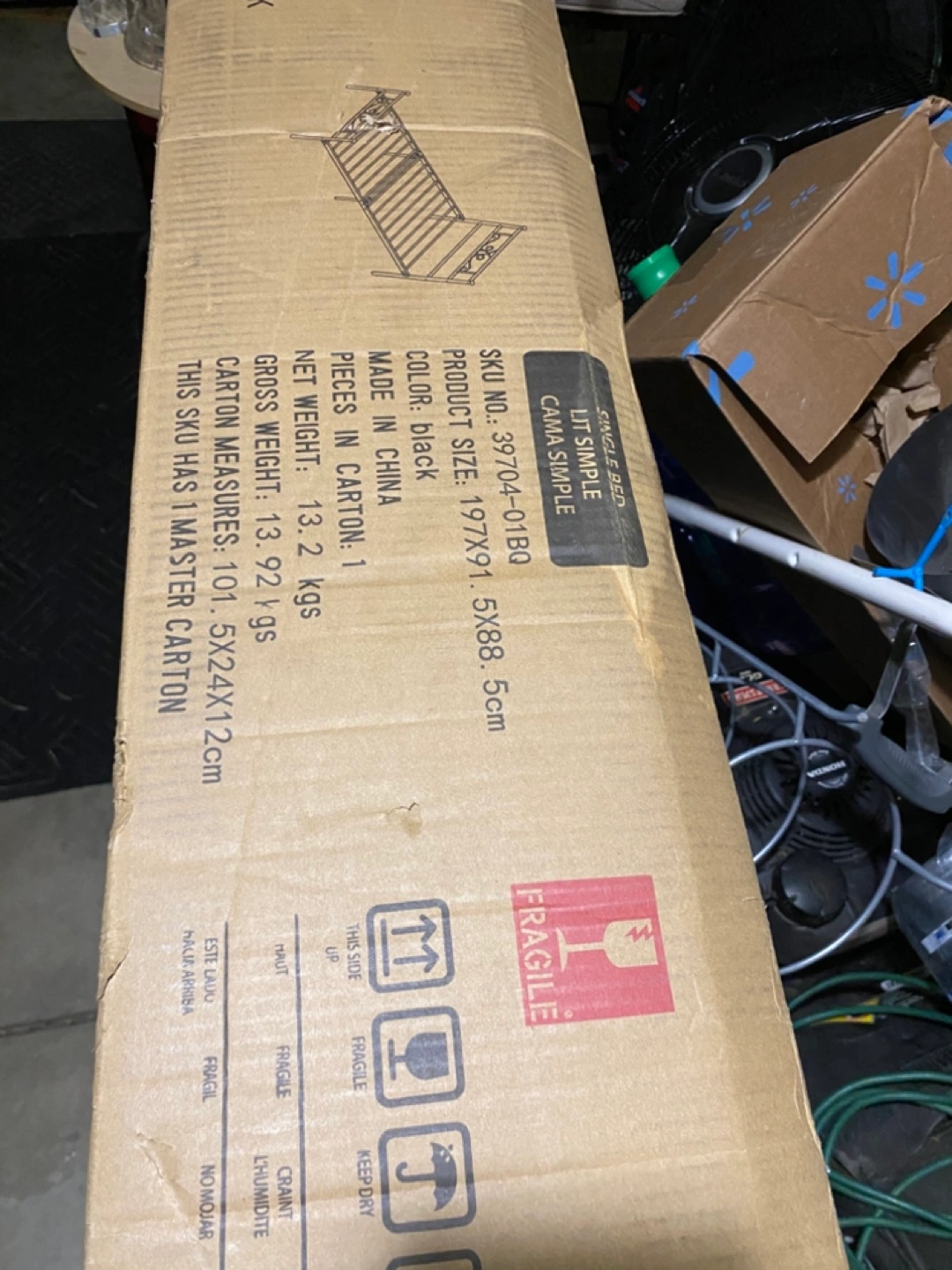 10Selling a Single Sized Lit Simple Cara Simple bed! It's black and comes in the original packaging. The product size is 197x91.5x88.5cm. Net weight: 13.2 kgs, Gross weight: 13.92 kgs. Carton measures 101.5x24x12cm