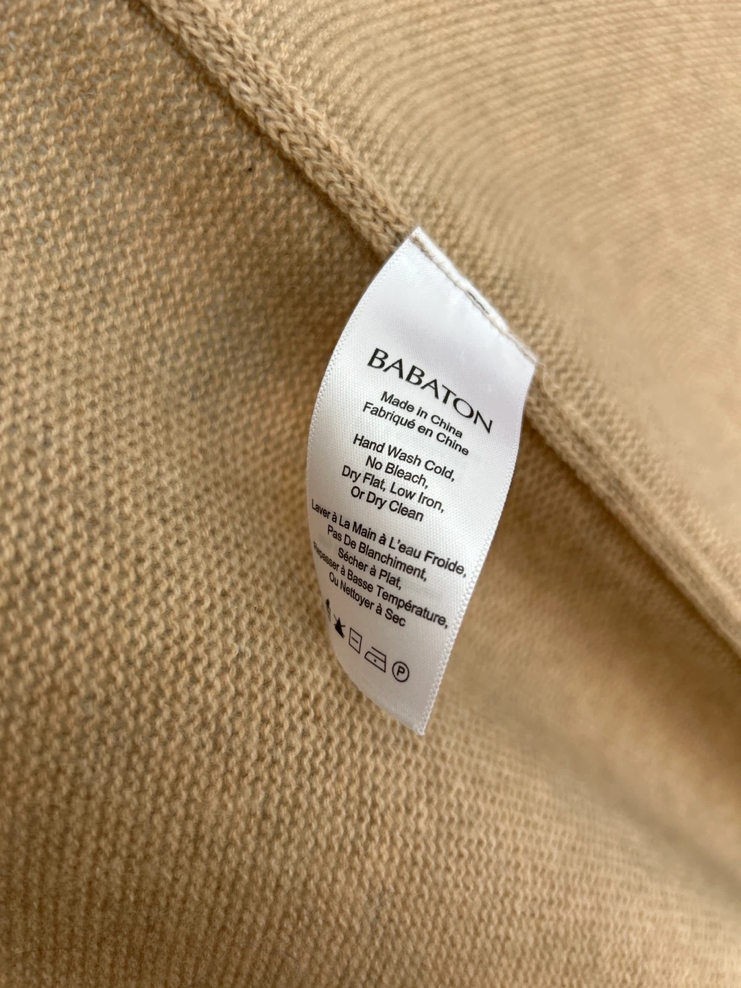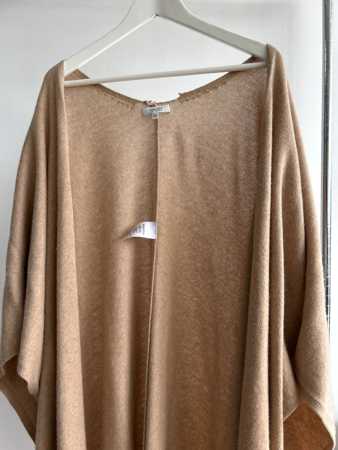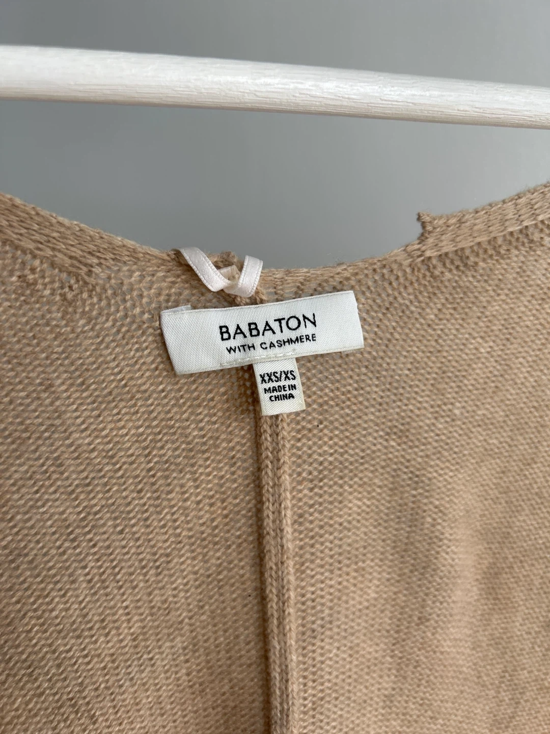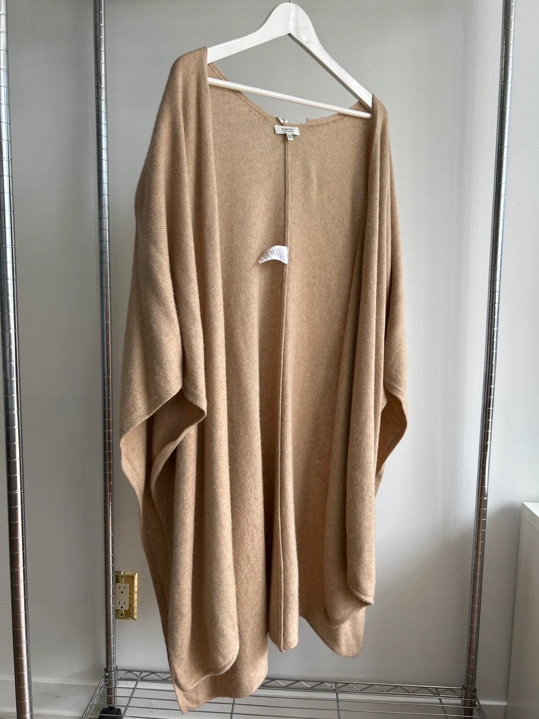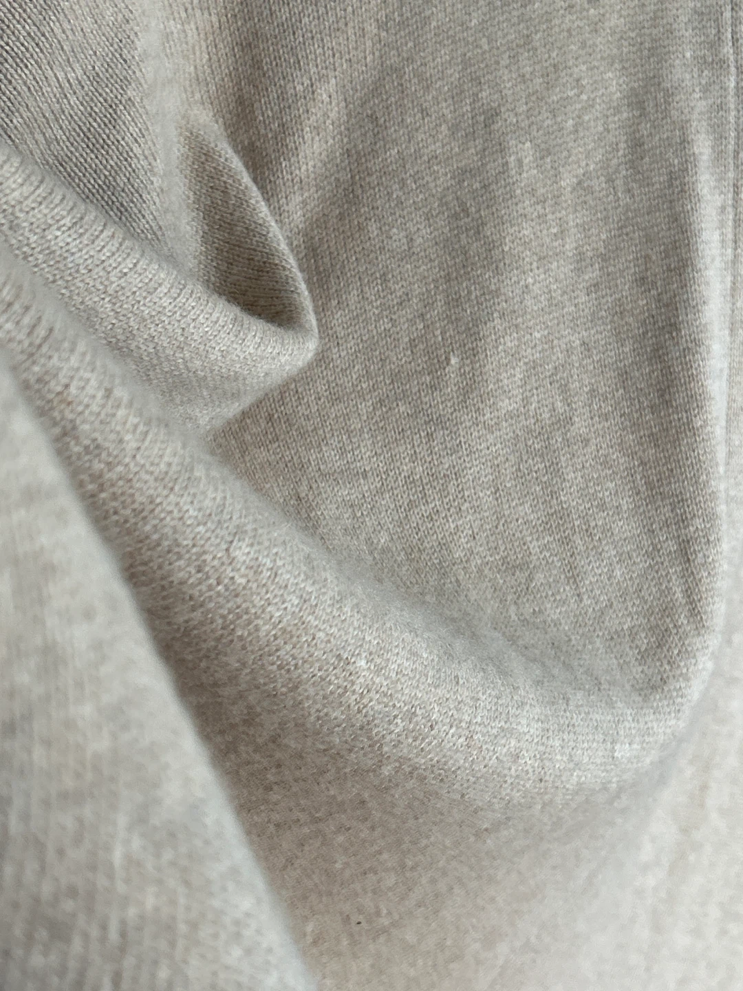 It's a blend with cashmere, so it's super soft and warm. The size is XXS/XS, and it's a beautiful neutral colour.