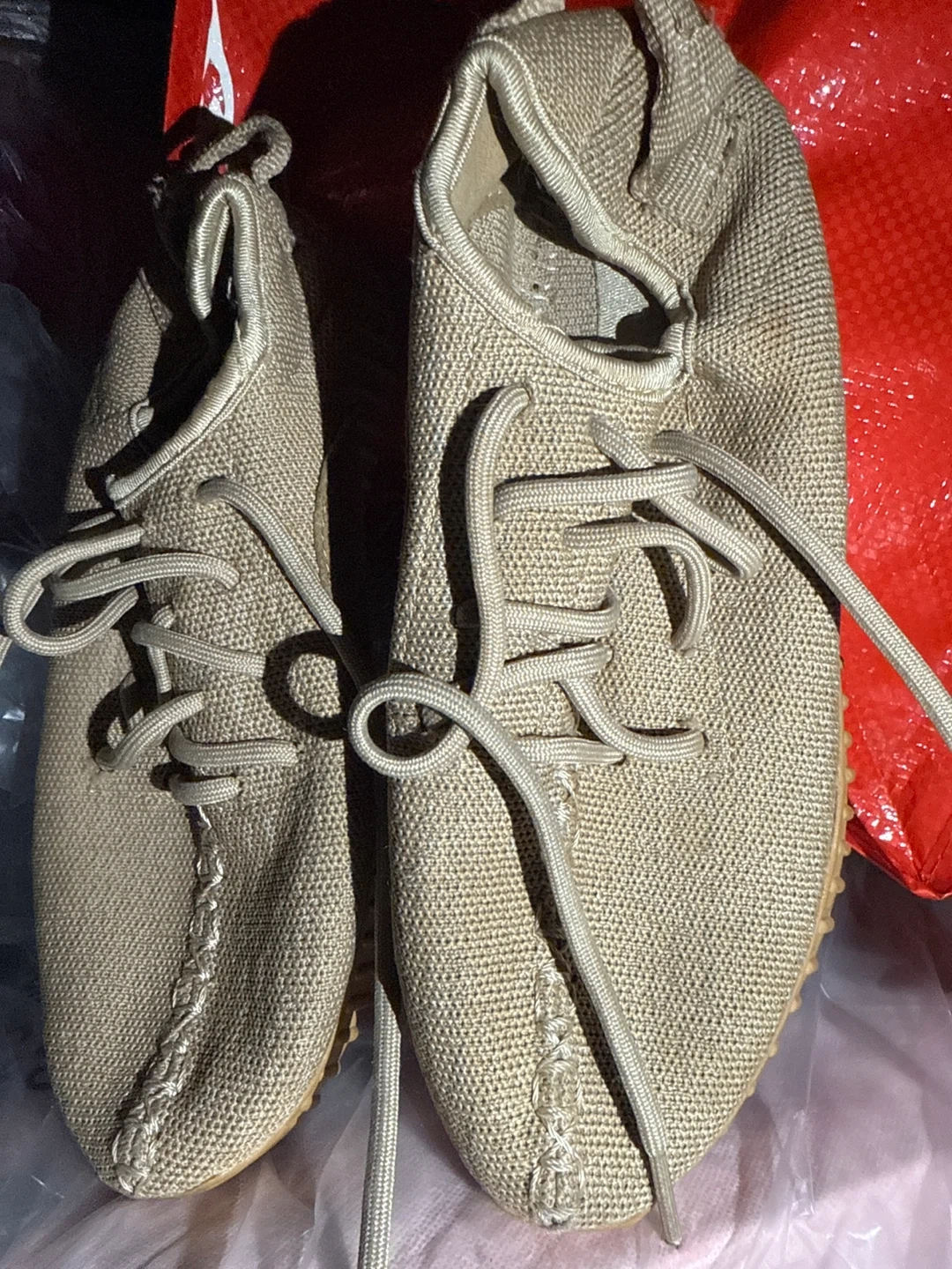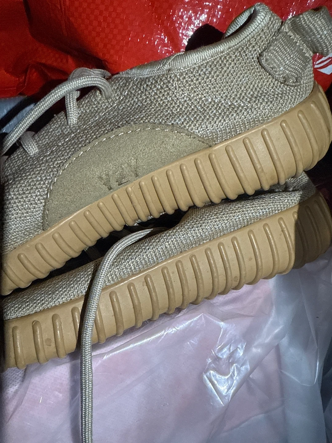 67Selling a pair of Adidas Yeezy Boost 350 V2 in a tan color. These shoes have some signs of wear, as shown in the pictures. They are still in good condition and ready for a new home!