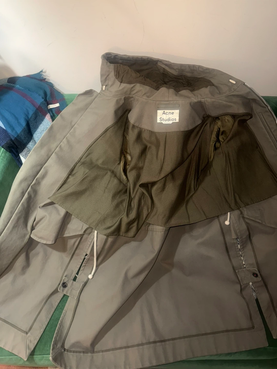 Acne Studios Melt Twill Parka Green, 2018 Spring Men collection, Size IT 48, runs oversized. Made from a heavyweight cotton, Adjustable Drawstring Hood Half Lined with Lined Sleeves Double Ended Zip Closure Two Front Pockets Drawstring Waist Adjustable Cuffs & Hidden Snap Buttons Side vents. Pick up from queens elmhurst