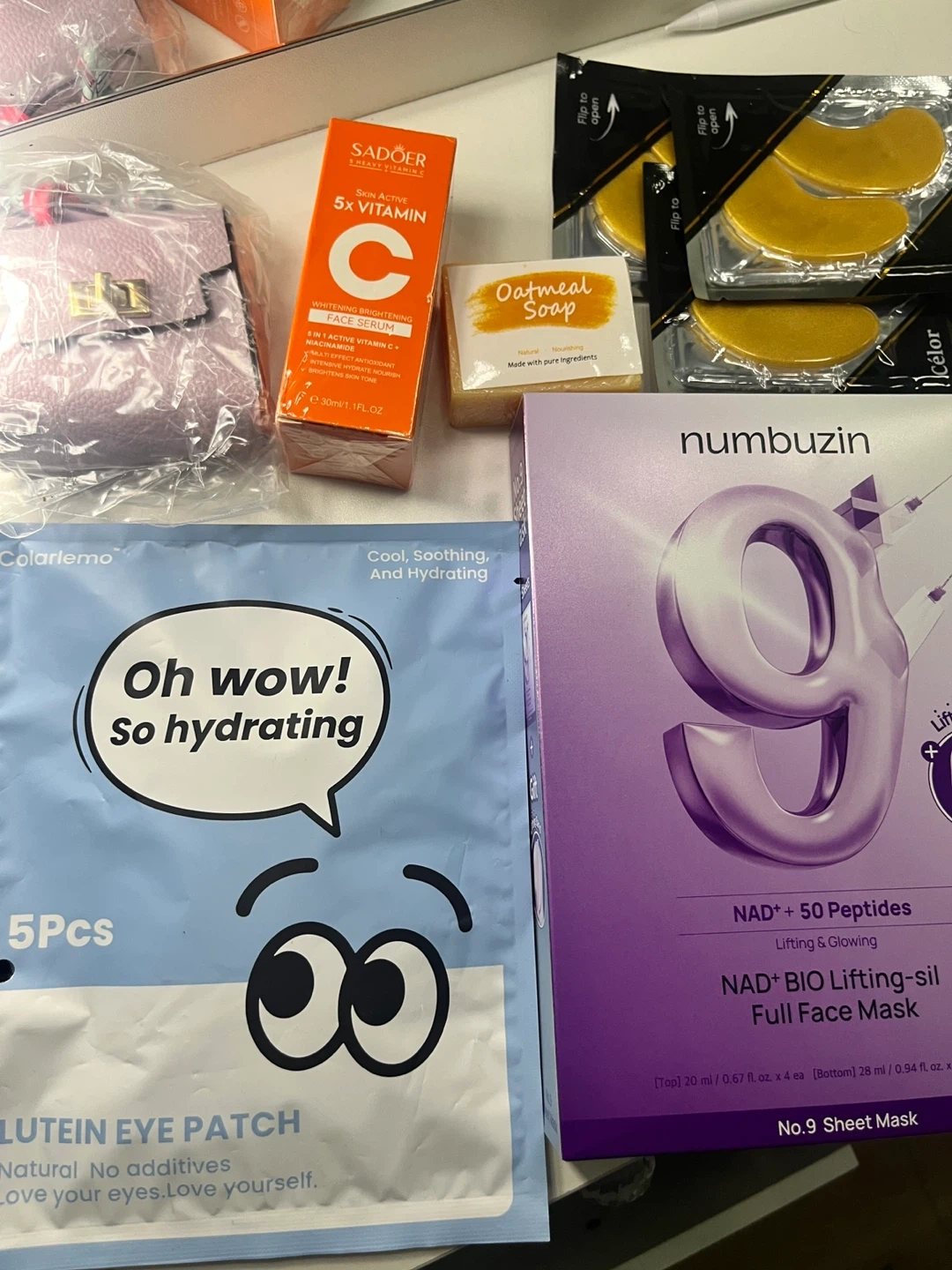 Selling a skincare bundle that includes: - Sadoer 5x Vitamin C Face Serum - Numbuzin No.9 Sheet Mask - Colarlemo Lutein Eye Patch (5pcs) - Oatmeal Soap Perfect for trying out new products or stocking up on your favorites!