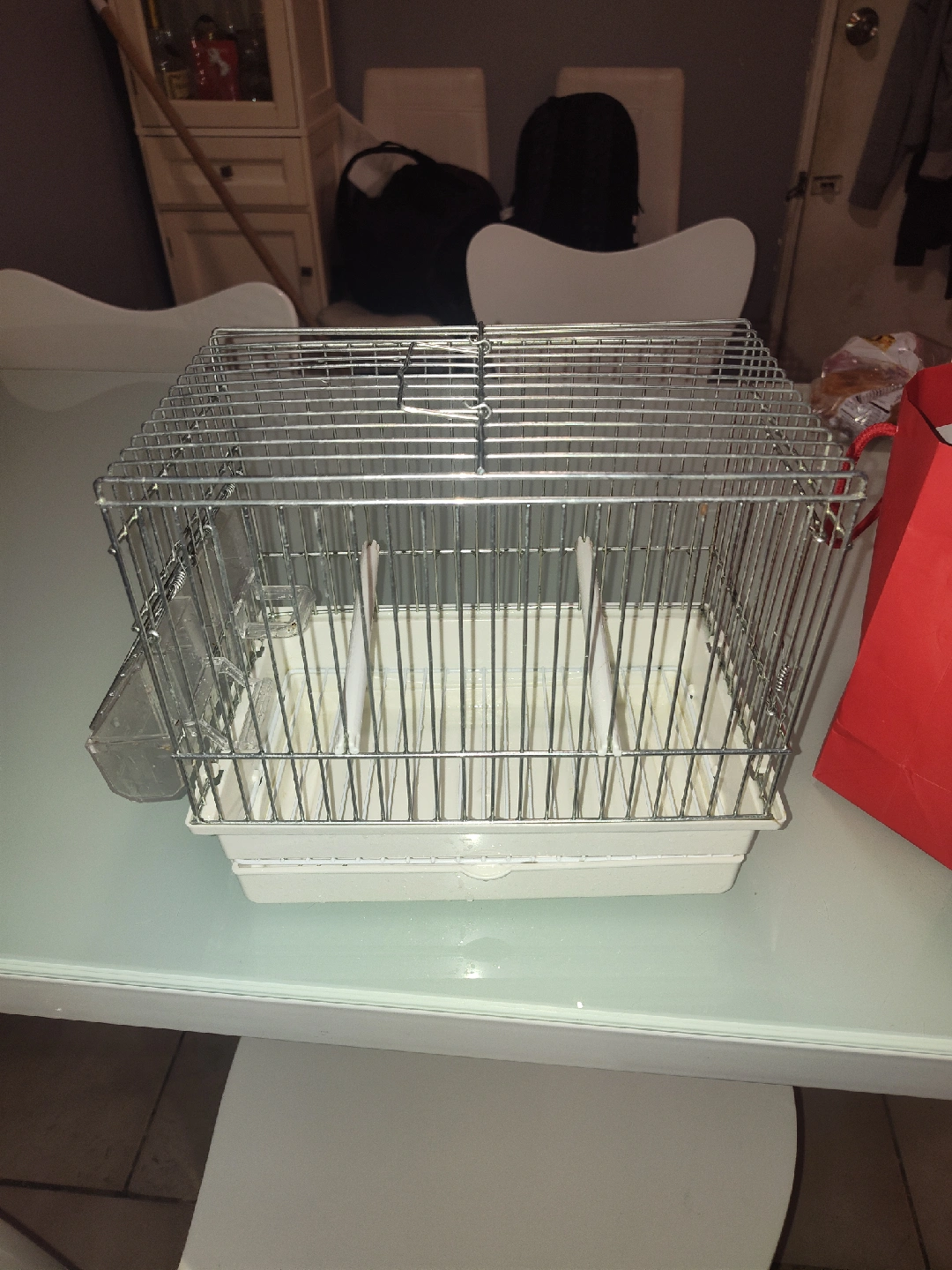 Selling a small animal cage, perfect for small pets. It features a wire cage and a plastic base for easy cleaning. Ideal for hamsters, gerbils, or other small critters