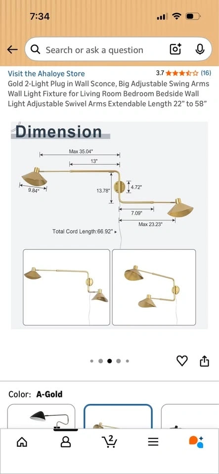 Moving sale! Doesn’t come with bulbs, but I used Edison bulbs and they gave a perfect aesthetic. Extendable arms from 22-58”. Check dimensions in the pic as both arms swing and are adjustable. Pick up on 56th & 8th.