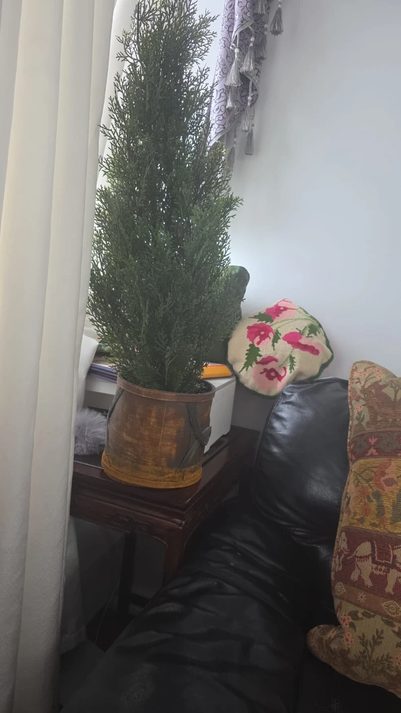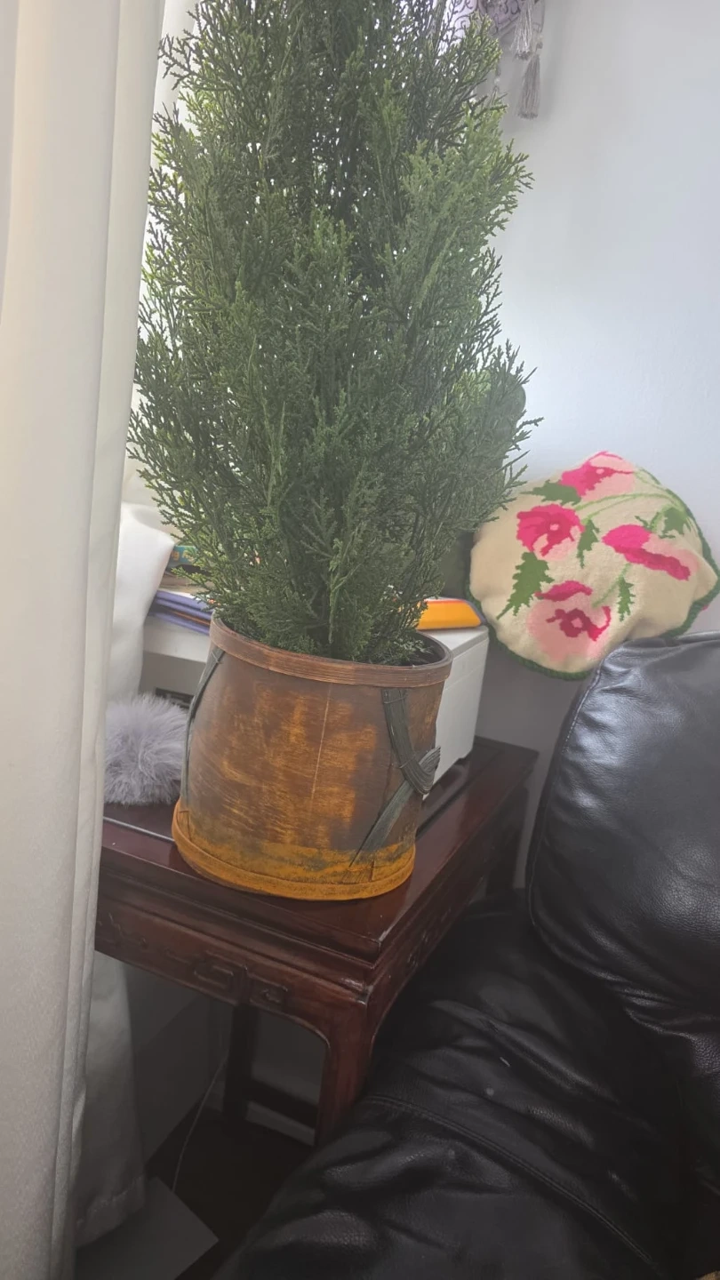 Artificial Potted Cedar Tree in Wood Bucket
