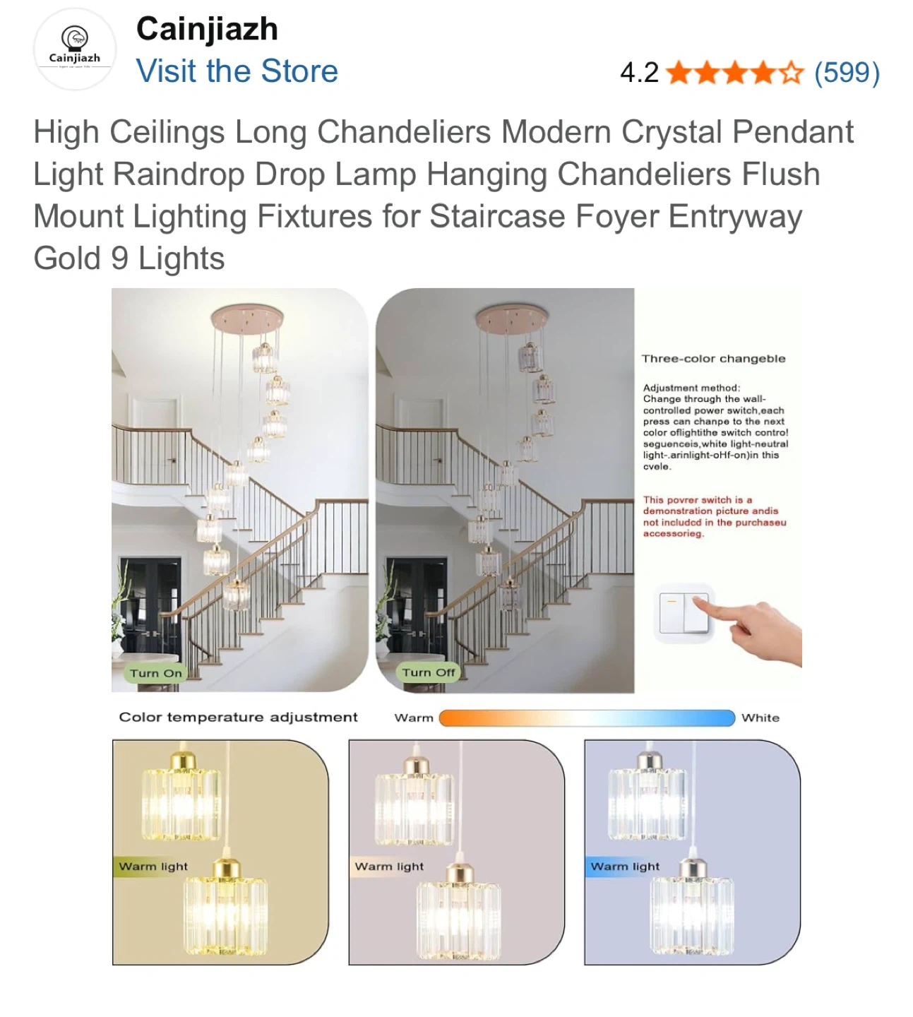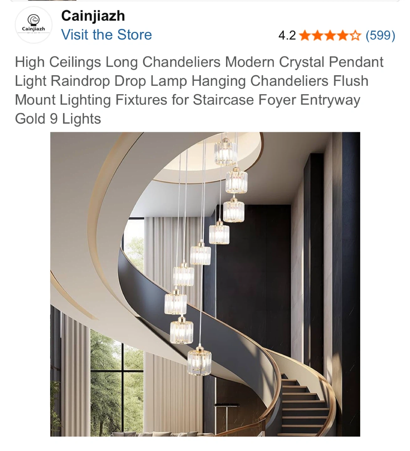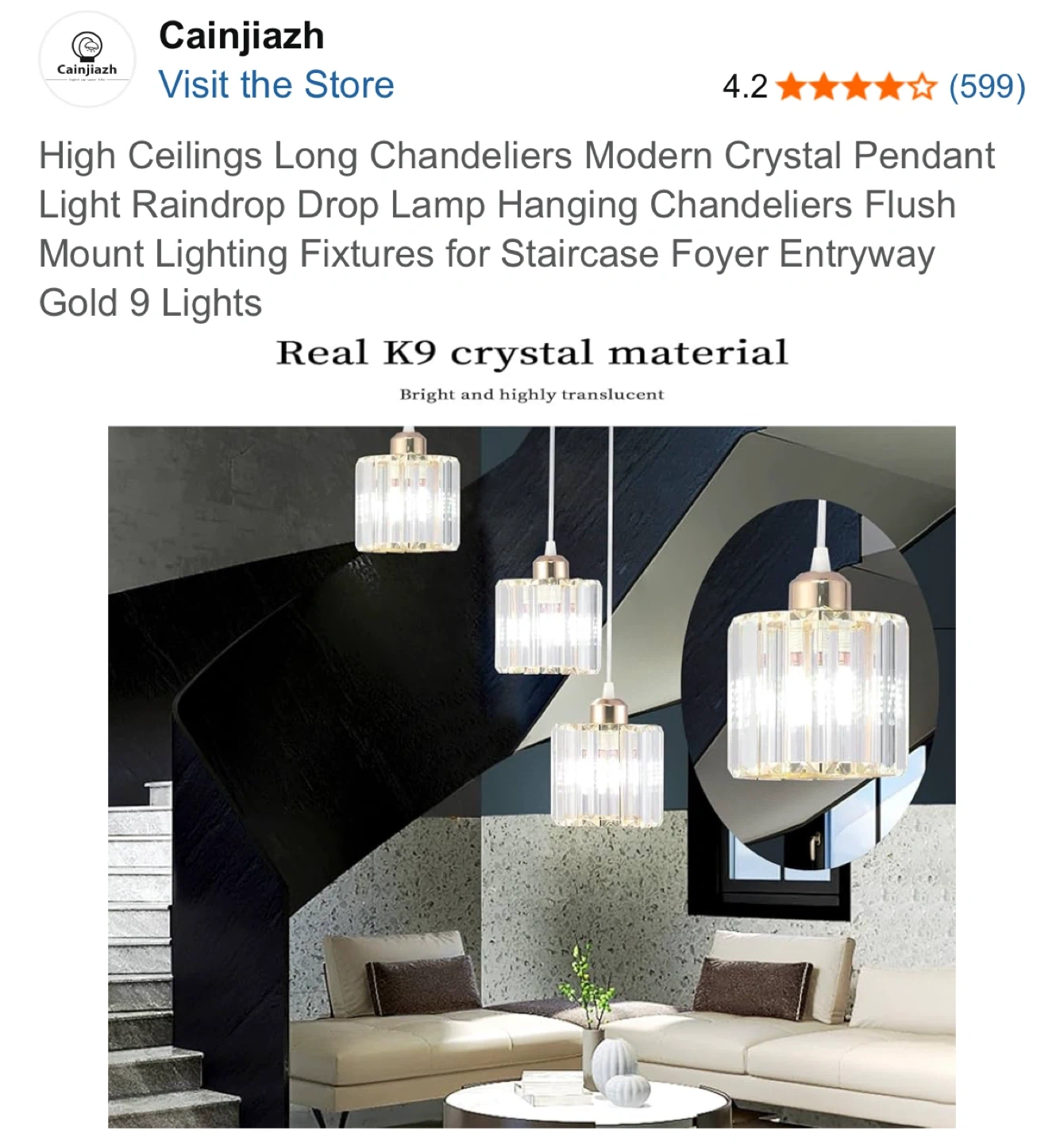 Cainjiazh Modern Crystal Chandelier Pendant Light Gold 9 Lights