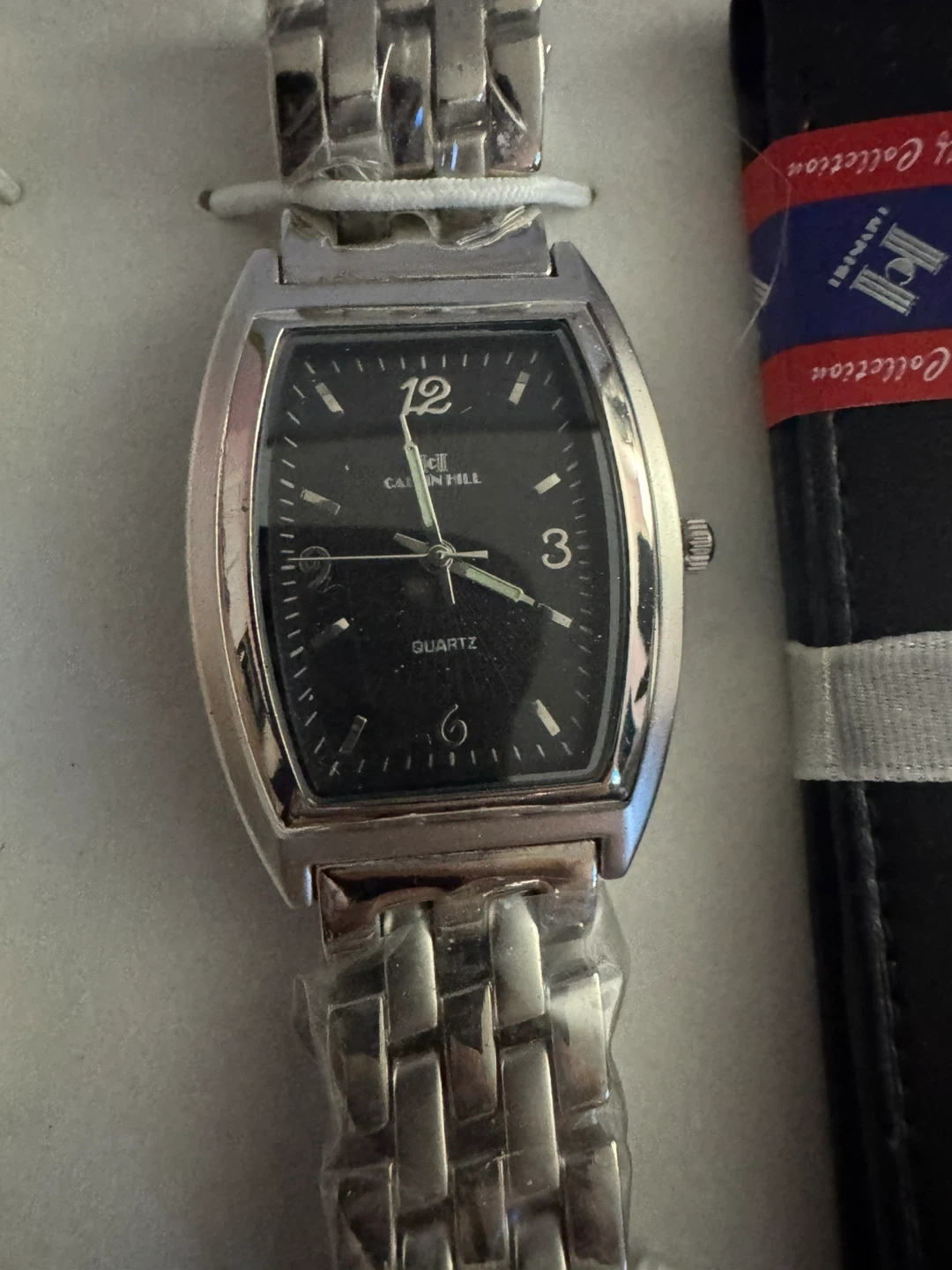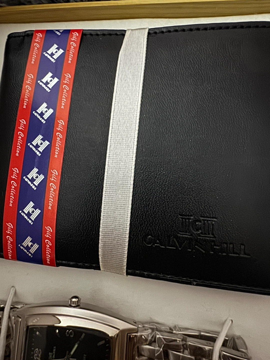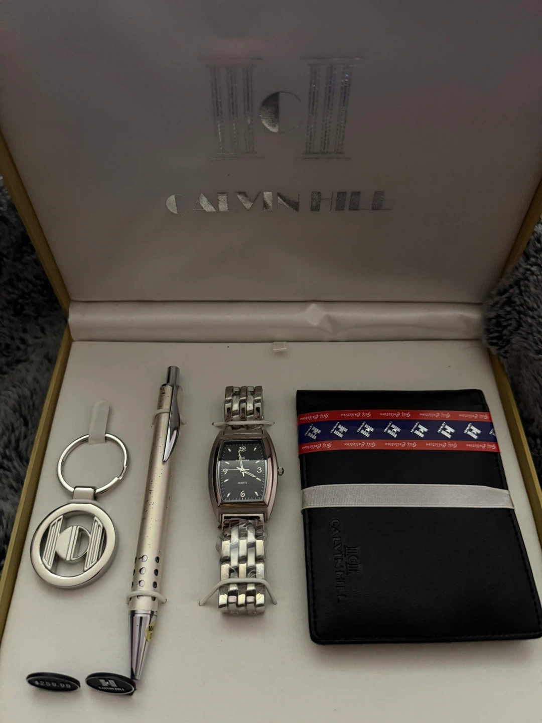 Selling a Calvin Hill Men gift set that includes a watch, wallet, pen, and keychain. The set comes in its original box. It would make a great gift!