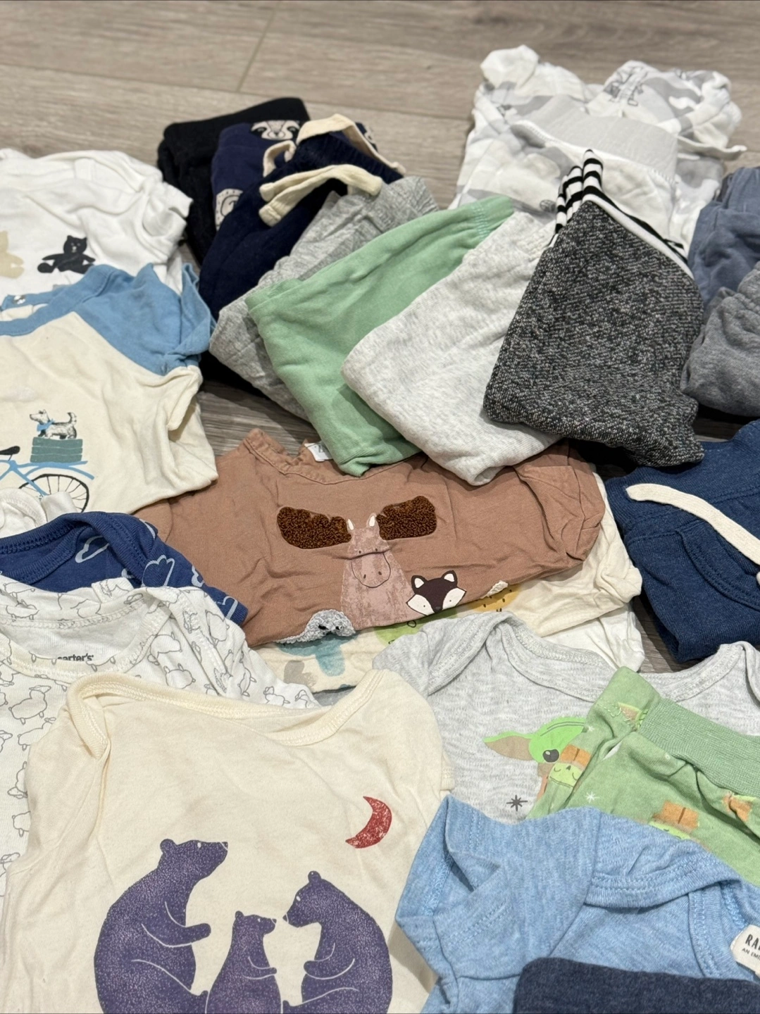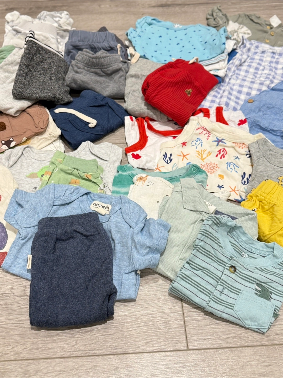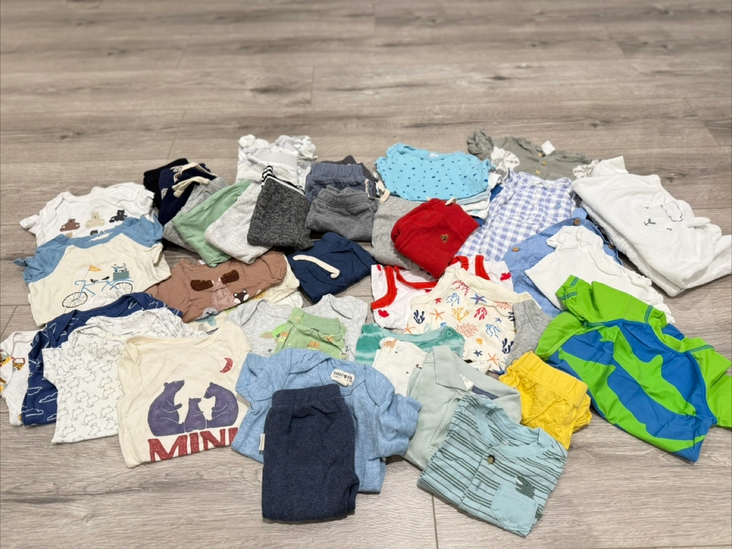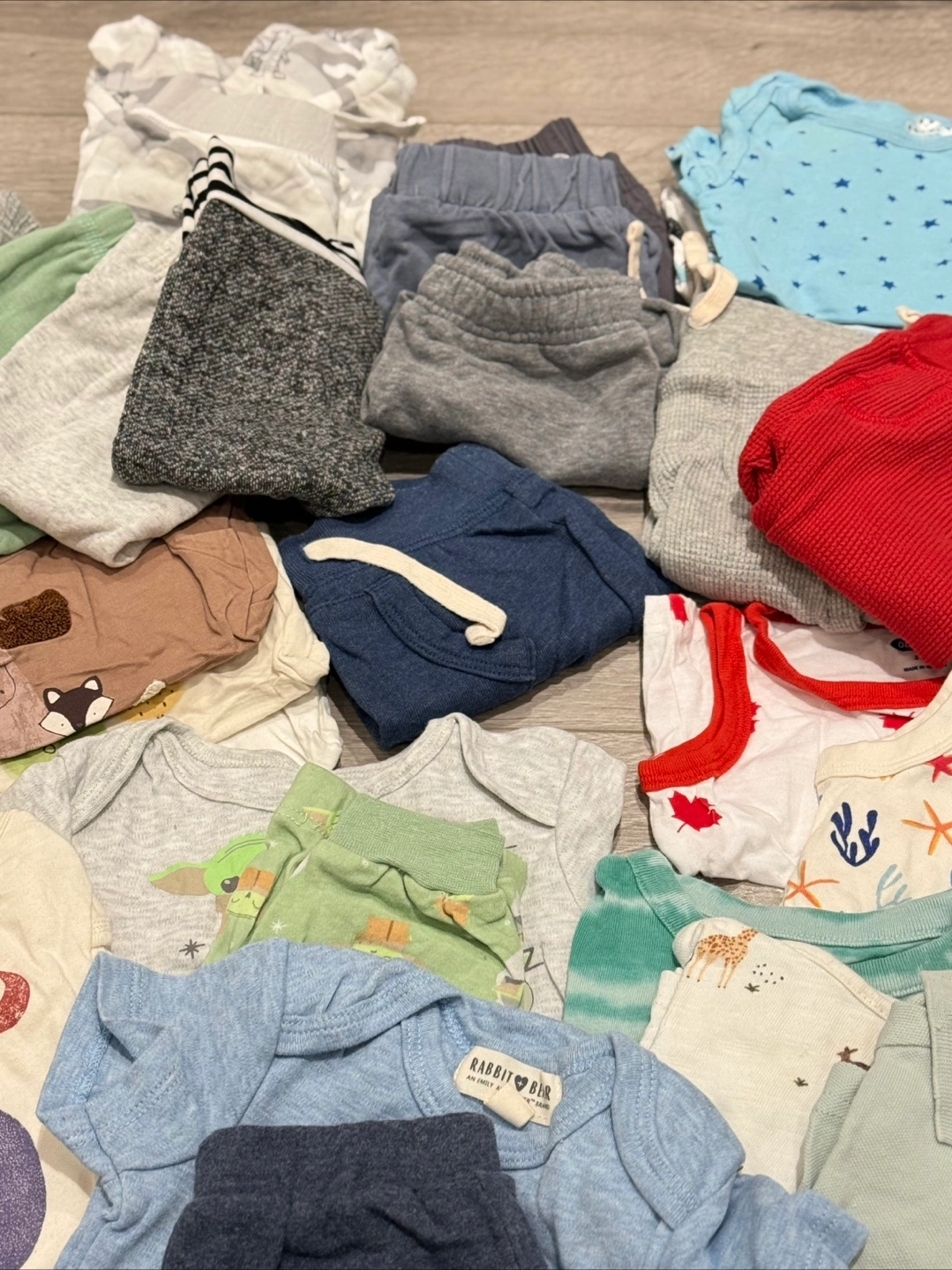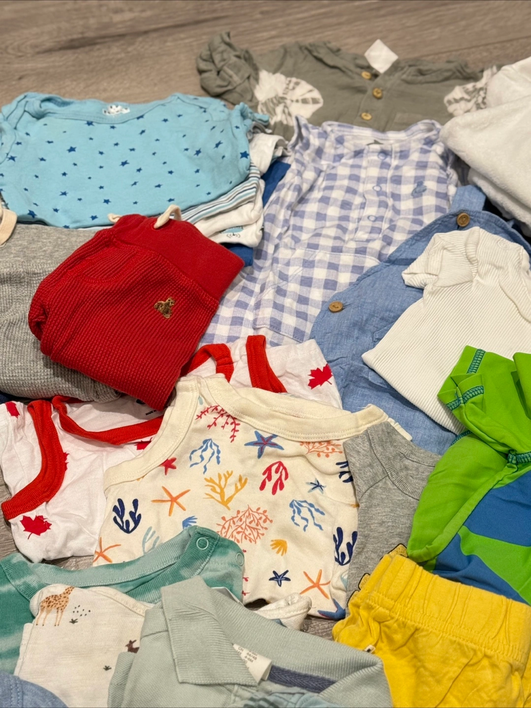 Selling as a set. 2 gap tshirt onesies. 9 cottons pants (baby gap, carters, old navy), 3 Zara long sleeve shirts, 2 baby gap shirt and short sets, 4 stand alone shorts (old navy, carters), 5 rococo tshirt onesies, H&M tie dye romper, baby gap checkered romper, H&M shirt and jumper set, carters thick cotton sweater and jogger set (sheep design), George shorts romper swimsuit, 4 tshirts (H&M, baby gap, carters, Zara), 2 tshirt onesie and pant set, , 1 old navy Tanktop, 1 old navy Tanktop onesie, 1 old navy long sleeve onesie, 3 tshirt onesies (old navy, carters). Comes from smoke free/pet free home. Pick up only Forty First Street/Lakeshore Etobicoke Cash only.