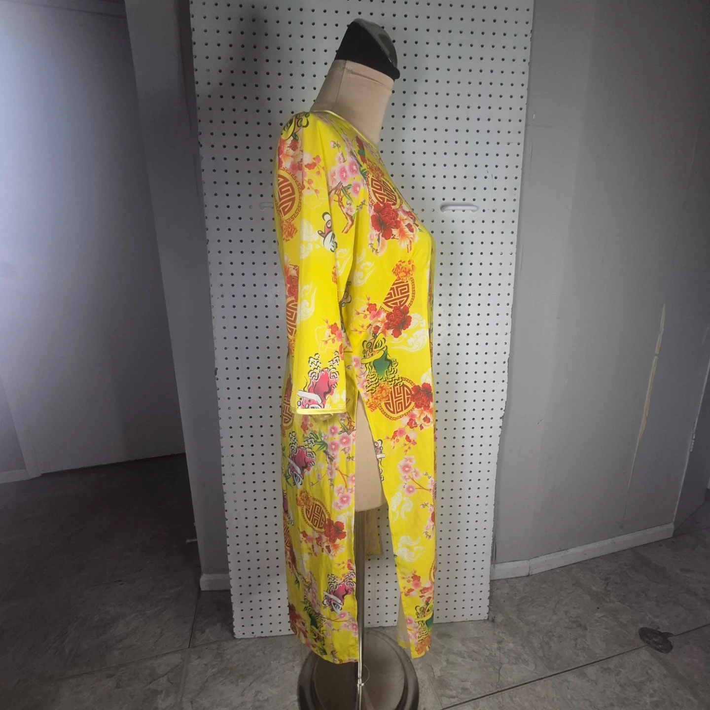 Yellow Floral Print Dress Tet Vietnamese Ao Dai
