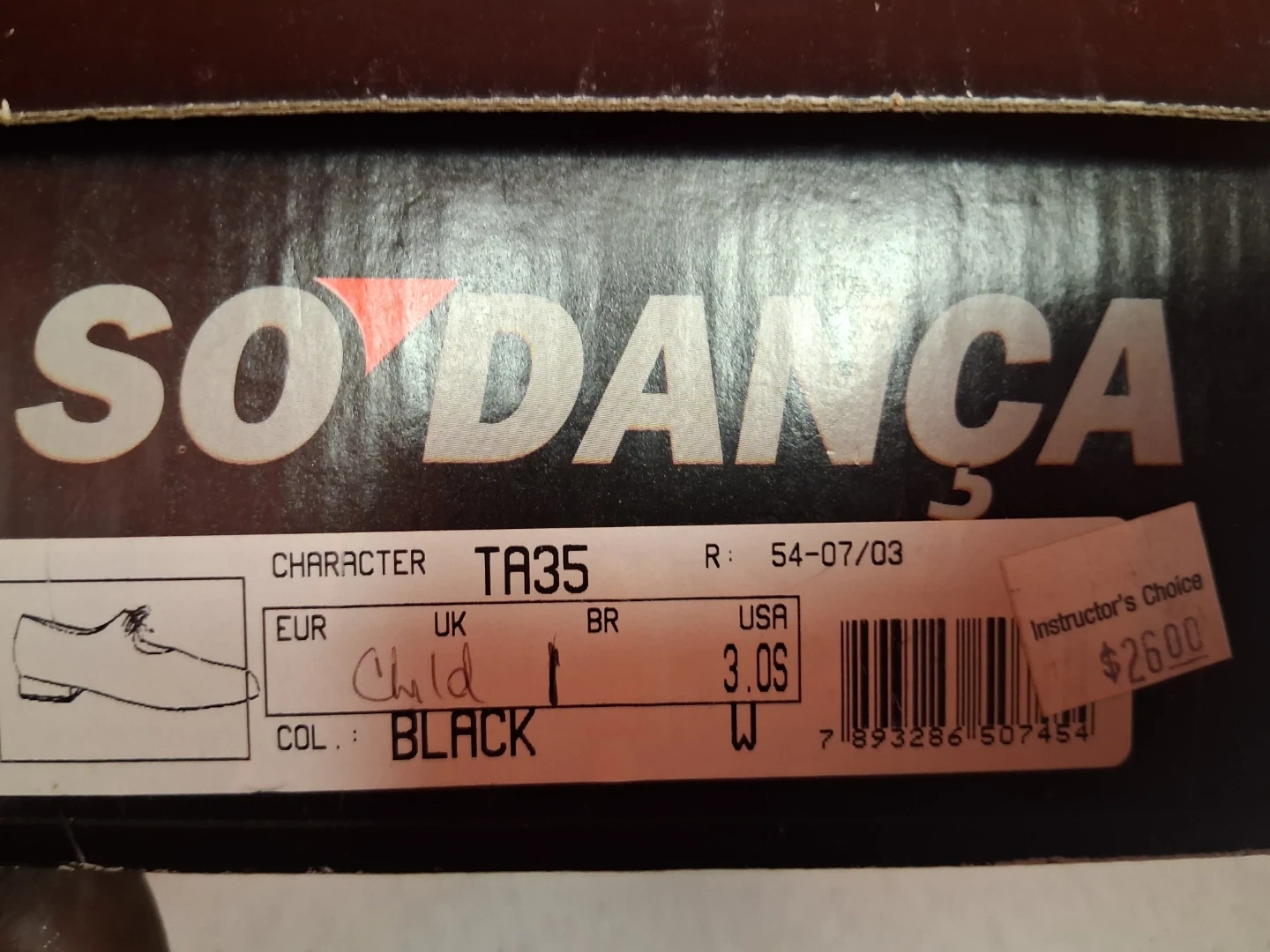 55Selling a pair of So Danca TA35 character tap shoes for children. They are black and size 3.0S (US sizing). The original price was $26.00. Comes with the original box!