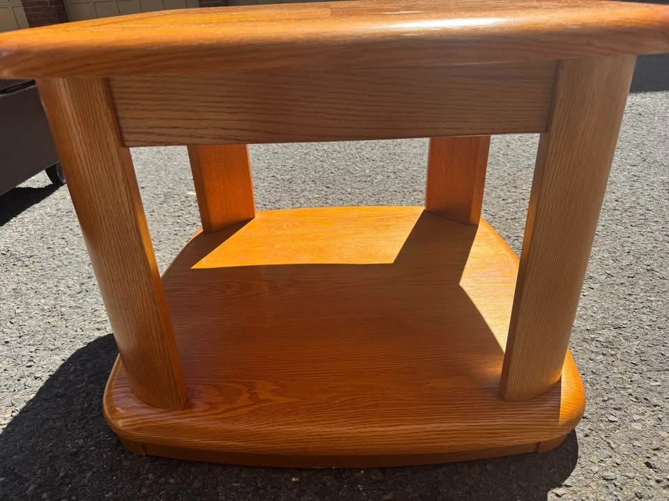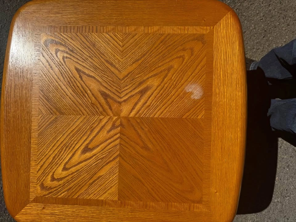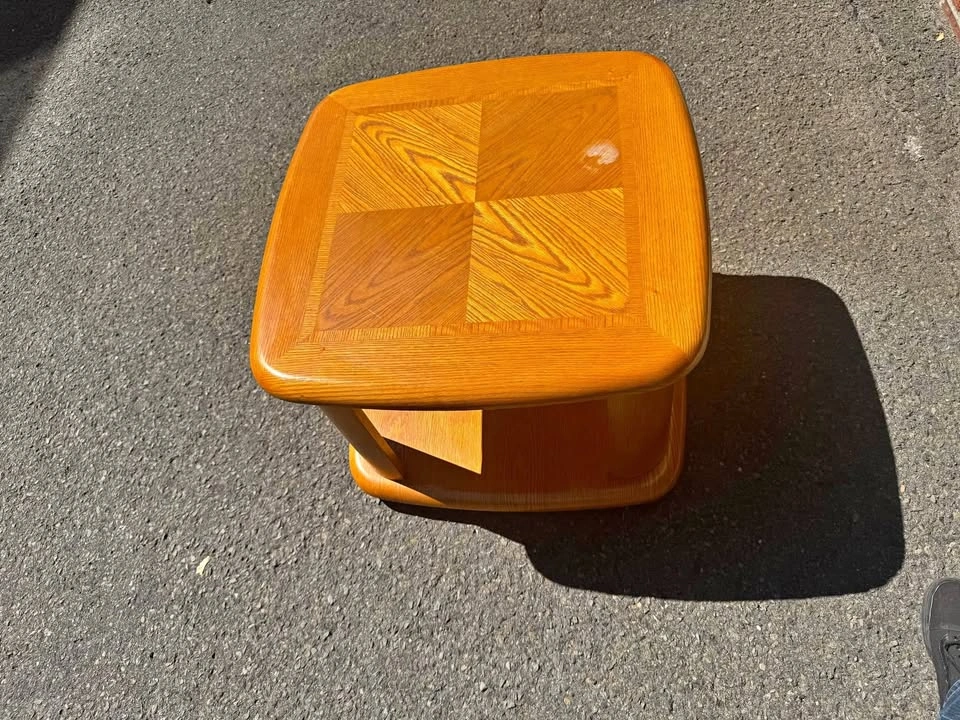 Classic solid oak veneer side table with a parquet-style top and rounded edges. Great for living rooms, dens, or as a sturdy lamp stand. • Dimensions: approx. 22” W x 22” D x 20” H (can measure precisely if needed) • Solid build, no wobble • Lower shelf for storage or display • Cosmetic surface mark on top (see photo) – doesn’t affect use Perfect if you need a durable, functional piece at a great price. 💲 Asking $60 (or best offer) 📍 Local pickup in Bloomfield, NJ