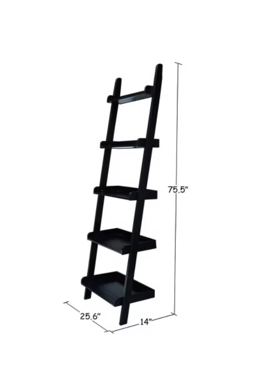 MOVING SALE! Target brand. Sleek and Modern! Black. Still in great condition. Moving and can’t fit this is the new space. This piece is constructed using solid parawood, which is highly recognized for its remarkable sturdiness and longevity. Overall Dimensions: 25.6"W x 14"D x 75.5"H Size of top shelf: 22.7"w x 4.9"d Size of second shelf from top: 22.7"w x 7.1"d Size of third shelf from top: 22.7"w x 9.2"d Size of fourth shelf from top: 22.7"w x 11.4"d Size of bottom shelf : 22.7"w x 13.5"d Distance from bottom shelf to floor : 6.4"