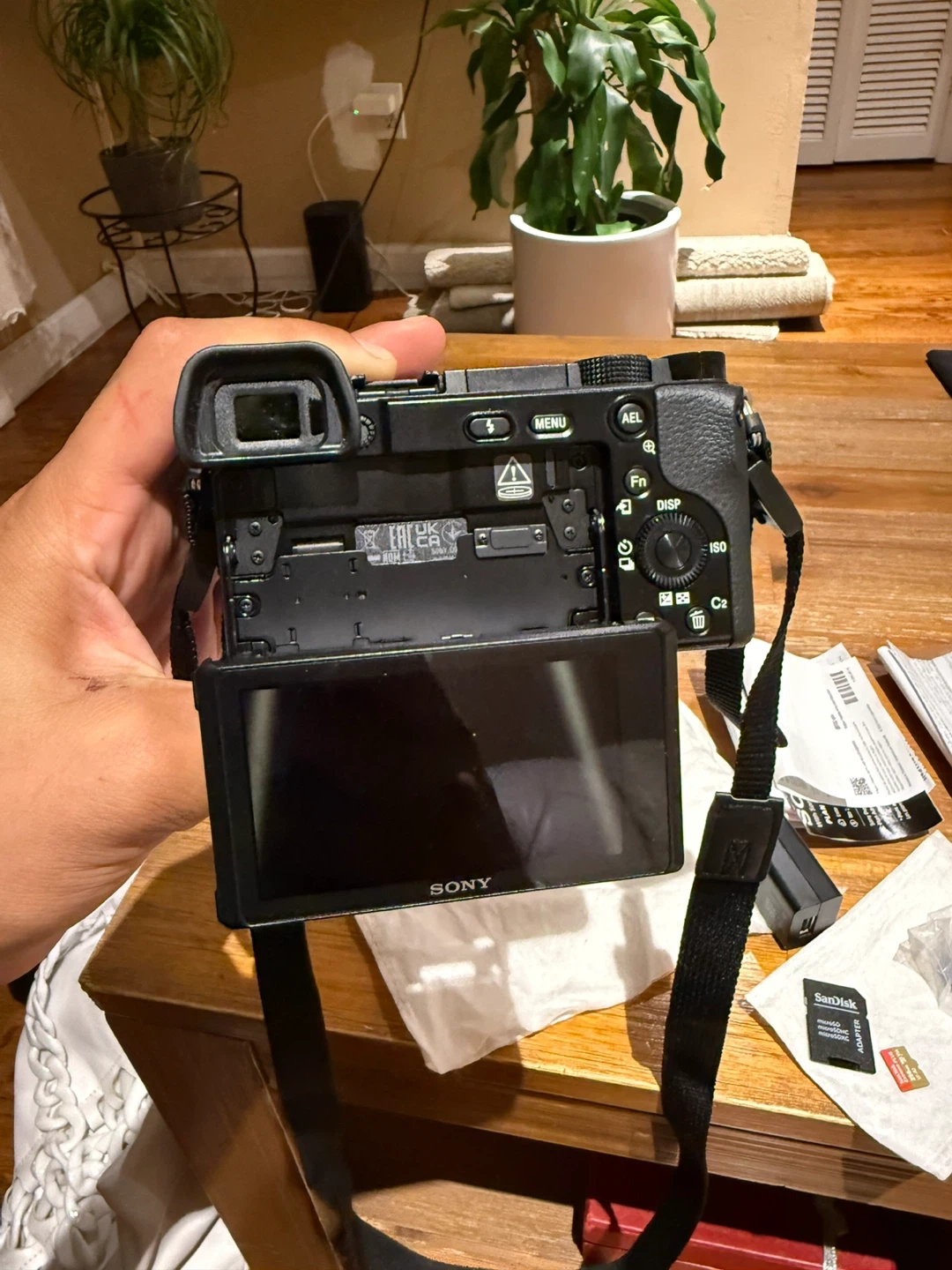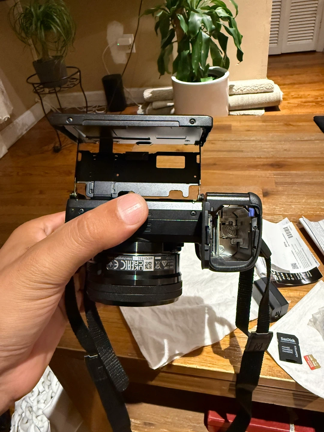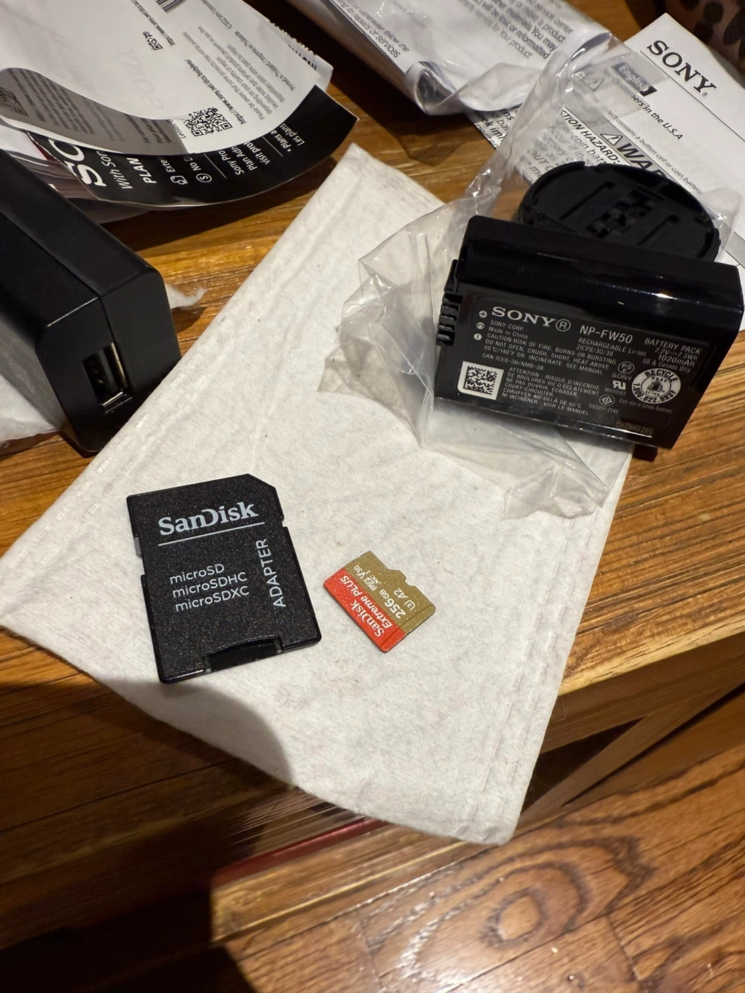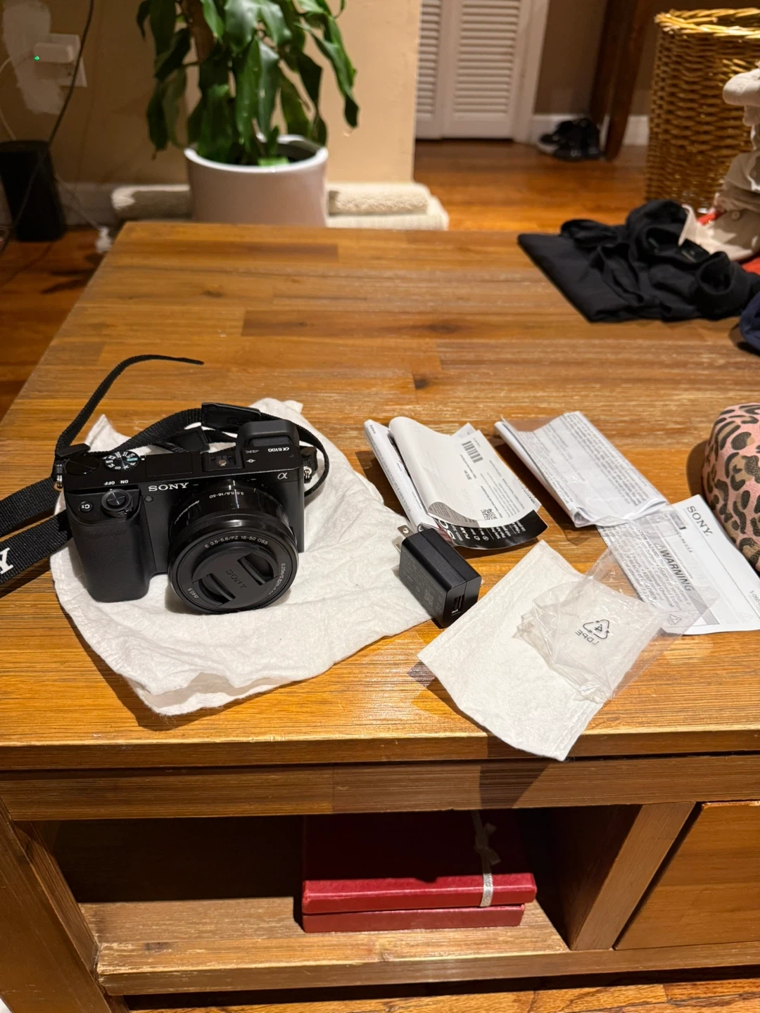 Selling a Sony Alpha a6100 camera in black with a 16-50mm lens. It comes with the original box and included components like the charger. Also included are SanDisk micro SD cards for extra storage. Great for photography enthusiasts! Only open and test it never used