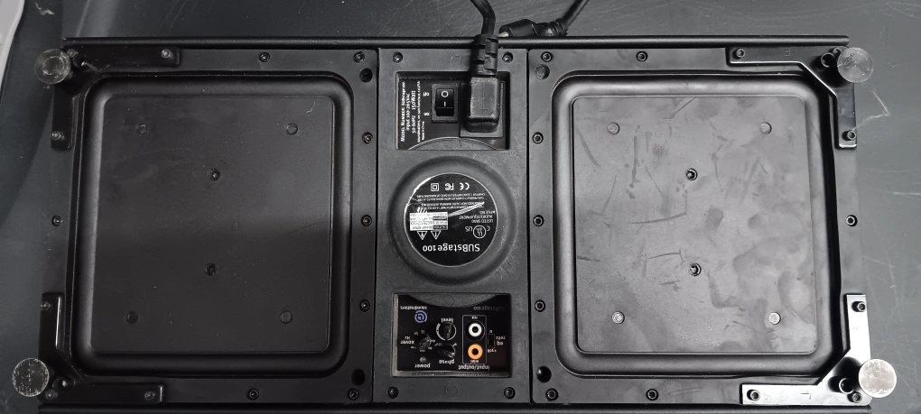 Subwoofer, good condition, black. Includes power cord. Some minor scuffs.