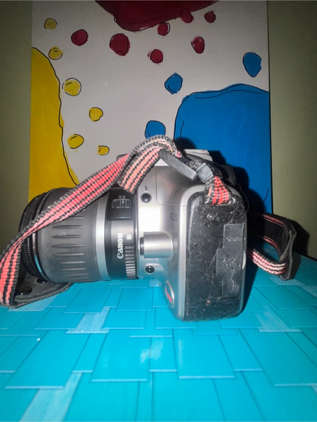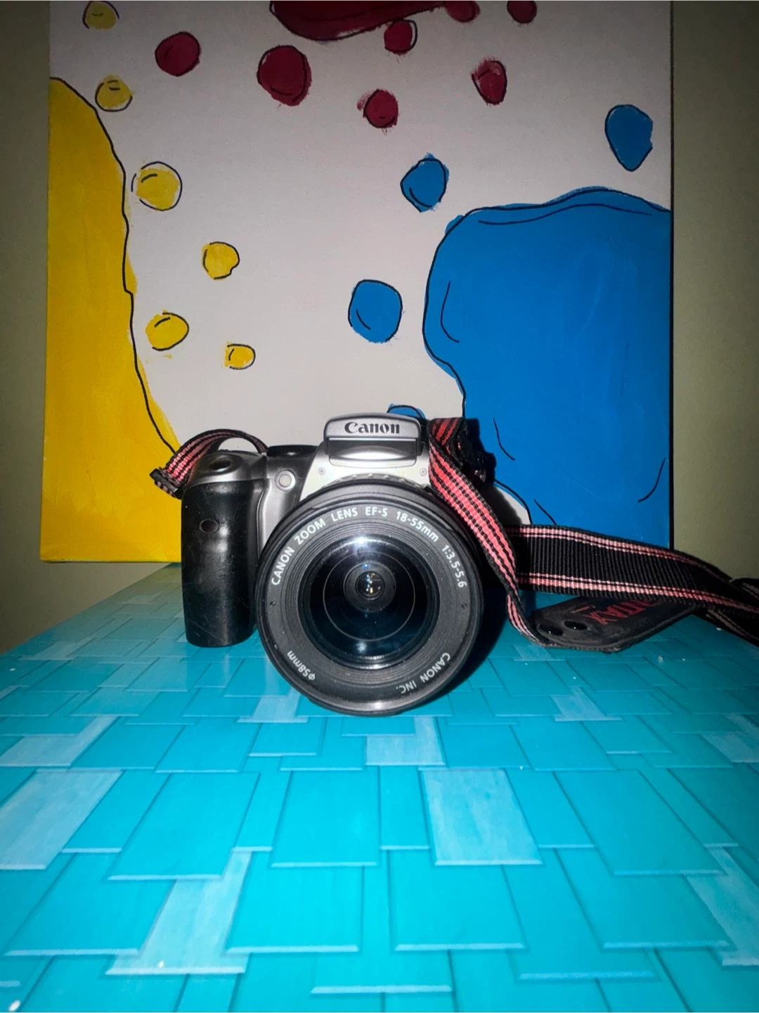 Canon EOS digital camera with an 18-55mm lens included. It's a great camera for capturing everyday moments. Perfect for beginner photographers!