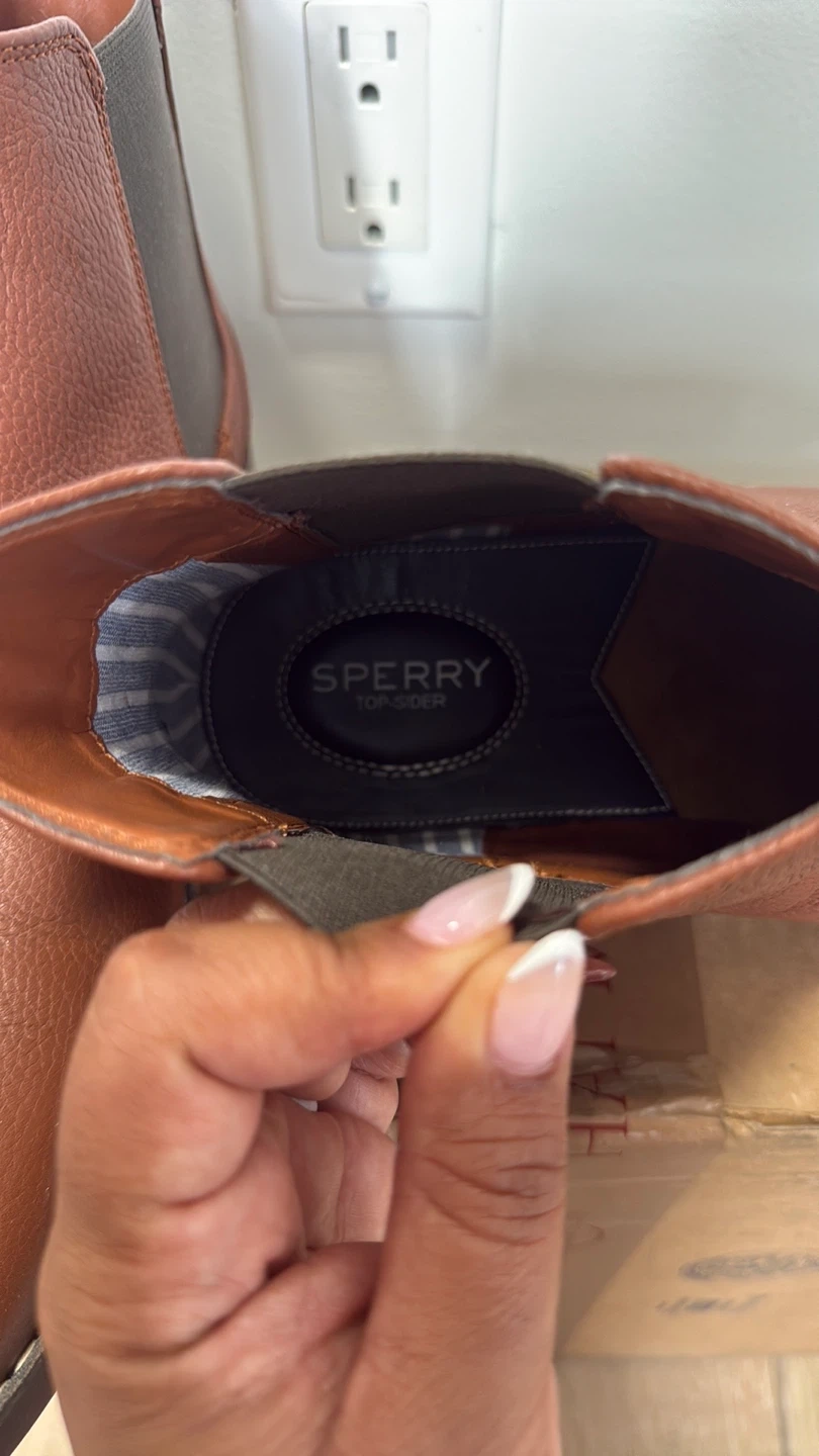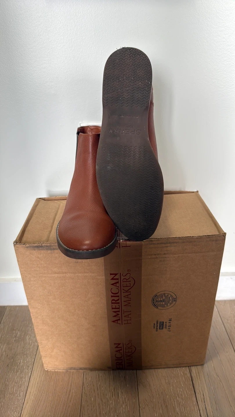 These Sperry Chelsea boots are in great condition and ready for a new home! They're a stylish brown leather and super comfortable. Perfect for dressing up or down!