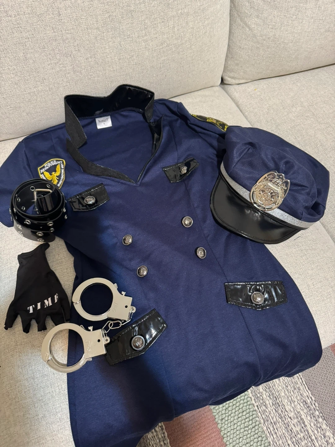 60Selling a Spirit Halloween police costume! It includes the dress, hat, belt, glove, and handcuffs. Great for Halloween or costume parties